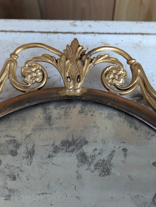 Antique Copper and Brass 14" x 20" Oval Bubble Glass Picture Frame