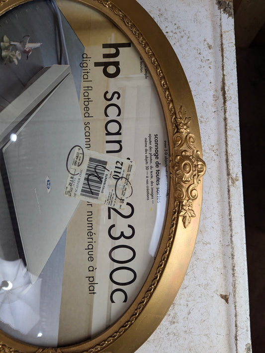 Antique Wood 17" x 23" Oval Bubble Glass Picture Frame