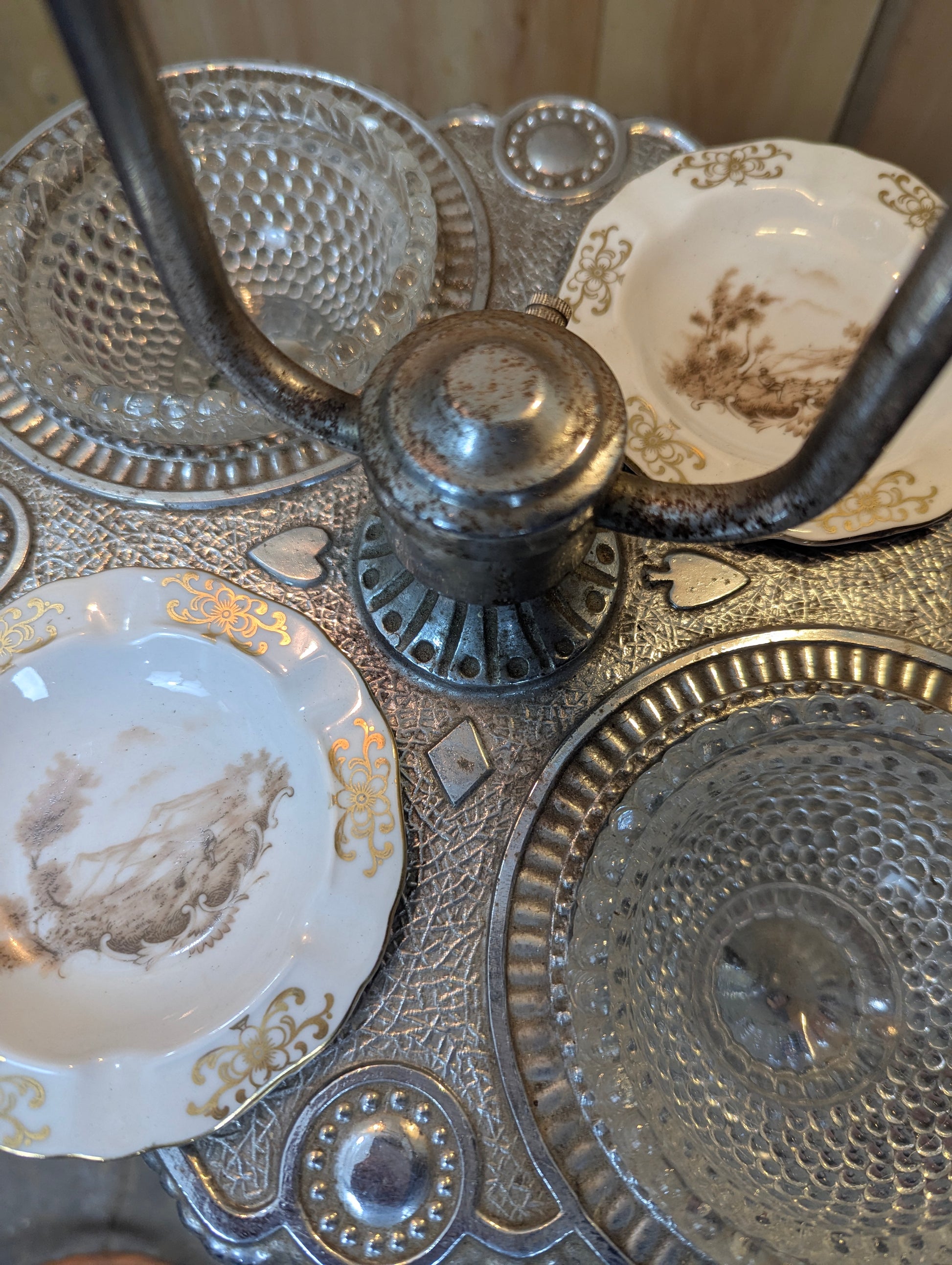 1930’s Art Deco Lighted Smoking Stand with Ashtrays and Serving Bowls