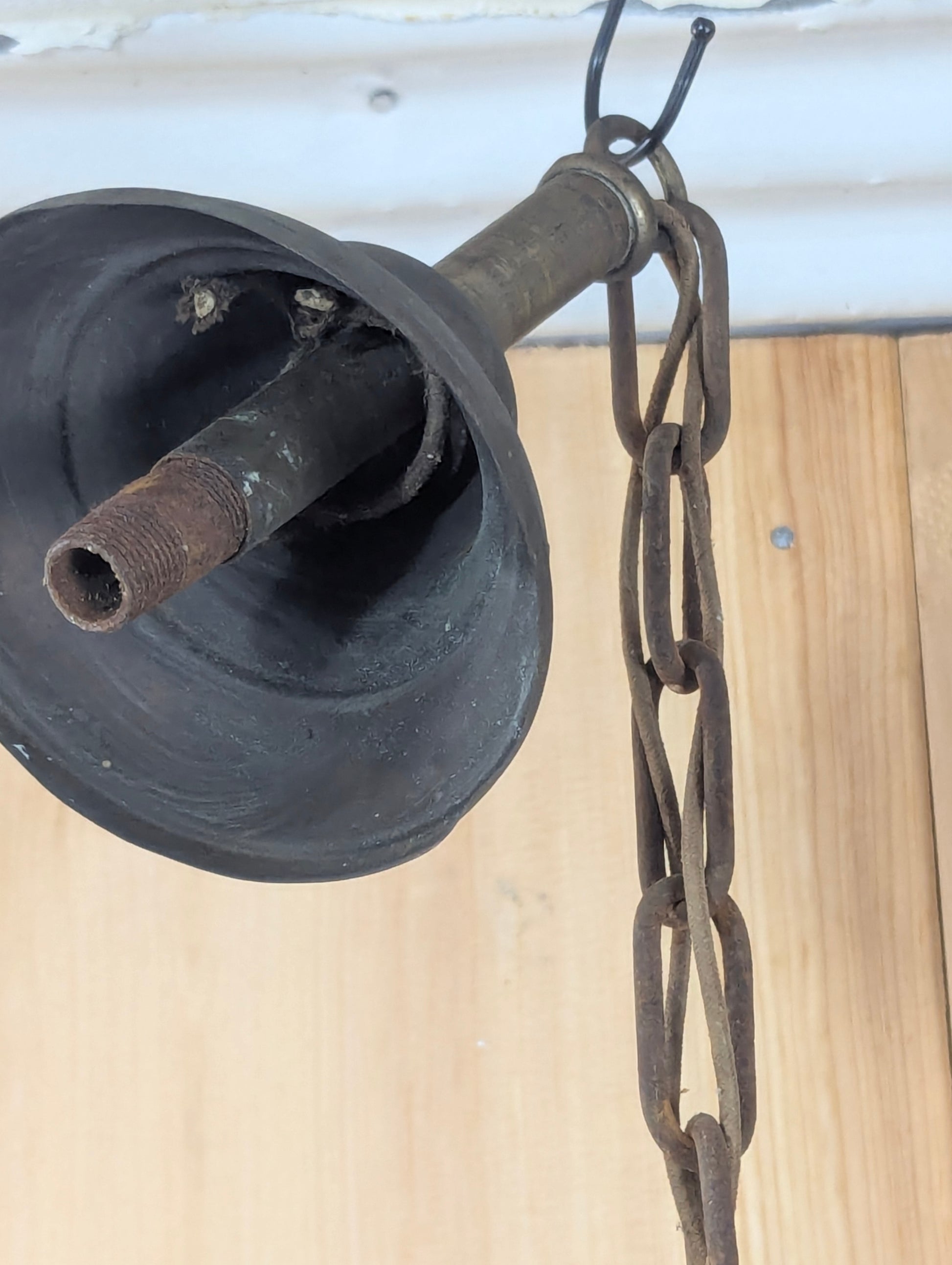 Add a timeless charm to your home with this 1940’s Vintage Schoolhouse 13” Pendant Light featuring a milk glass globe free of cracks or chips. While it retains its original wiring, rewiring is recommended to ensure safe, modern use. Its classic design enhances any space with nostalgic elegance, making it a perfect blend of vintage style and practical decor.