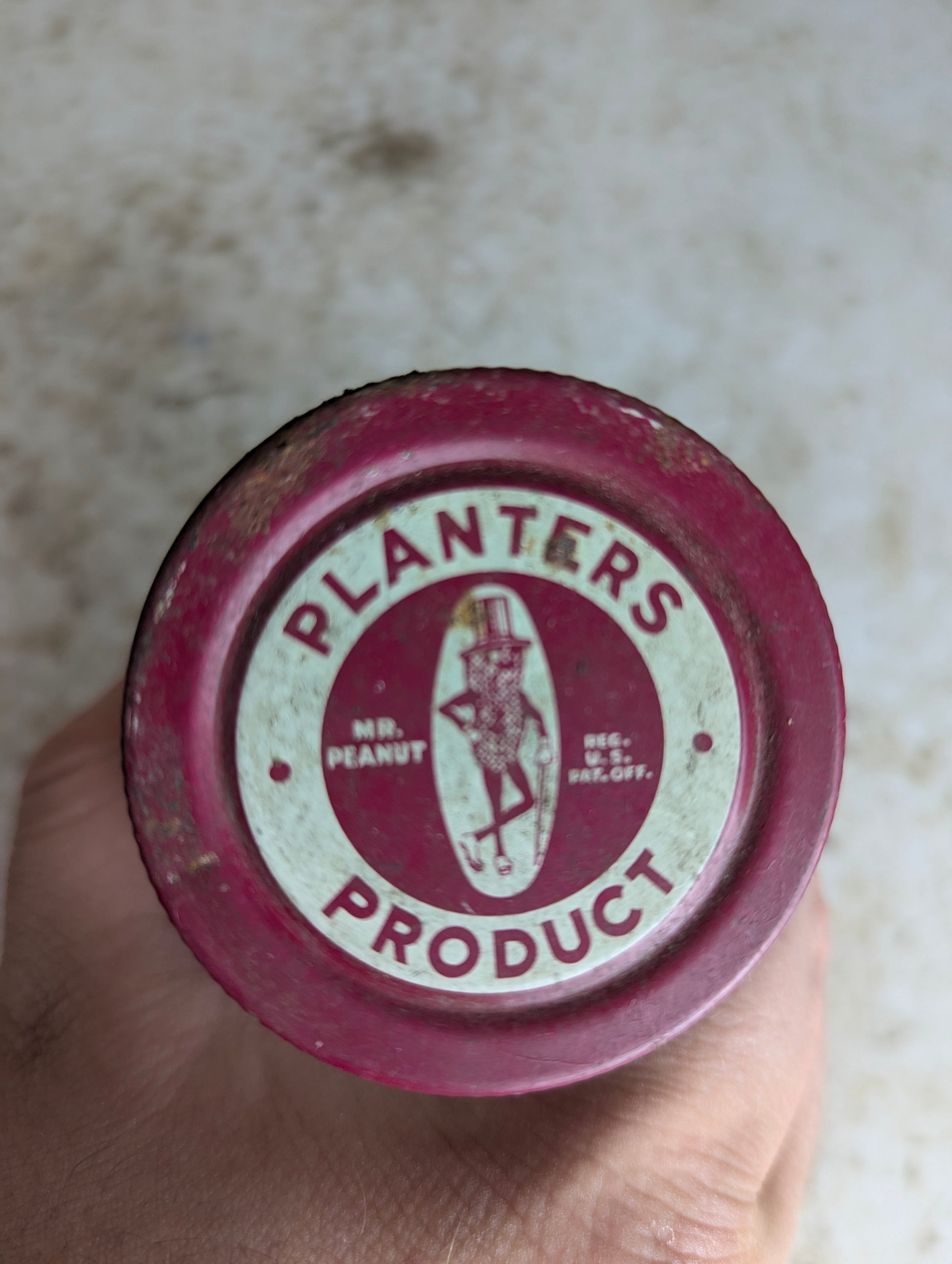 1940’s Planters 7.5 Fl Oz Chocolate Peanuts Glass Jar with Lid