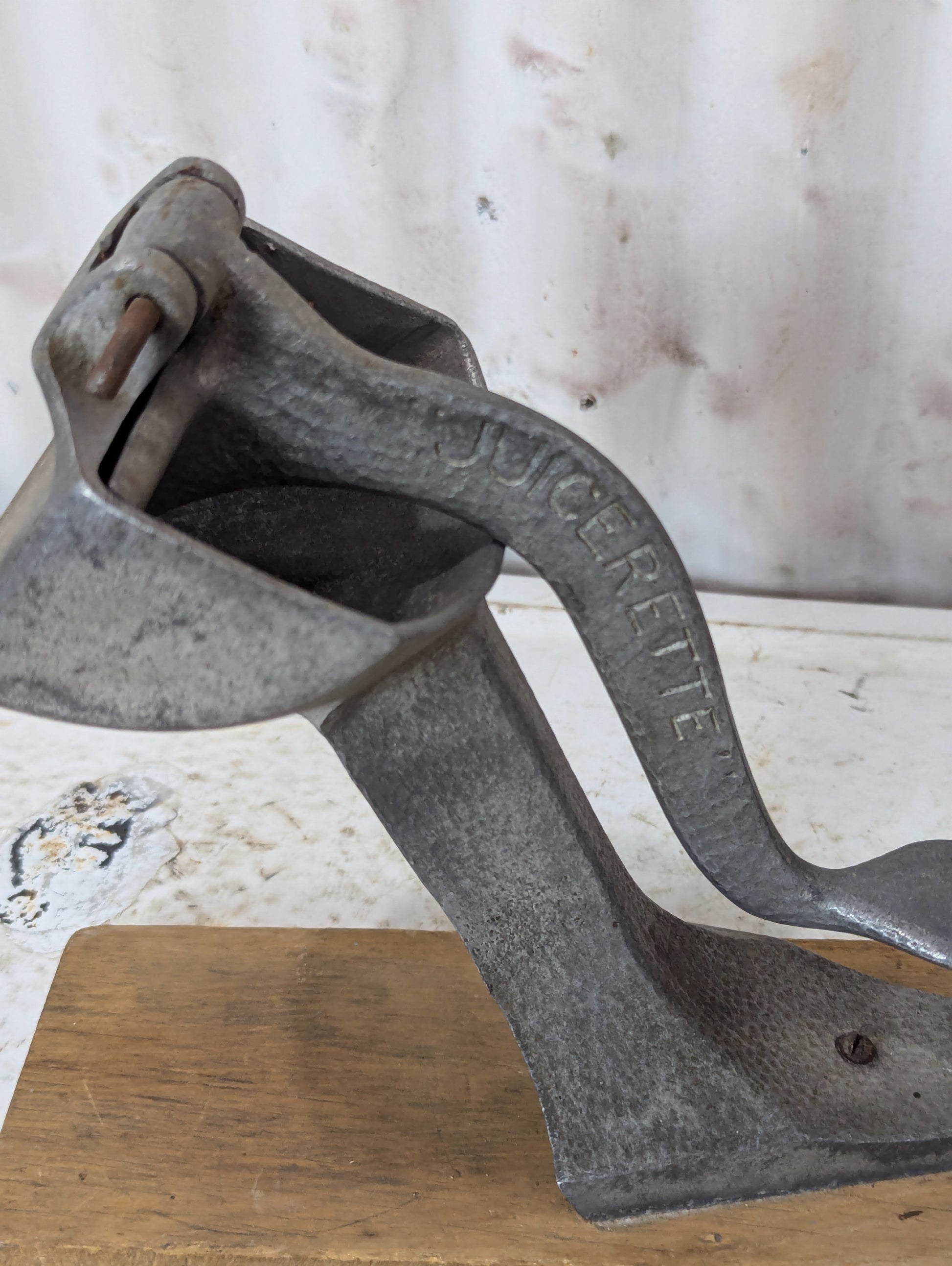 These vintage aluminum juicerettes are priced at $50 each. In fairly good condition they’re mounted on wood and are made by the Rival Mfg. Co. K.C .Mo USA. These heavy duty manual hand press juicers both measure 8 1/2" x 3” and are good vintage kitchenware/houseware collectible/display/decor items.