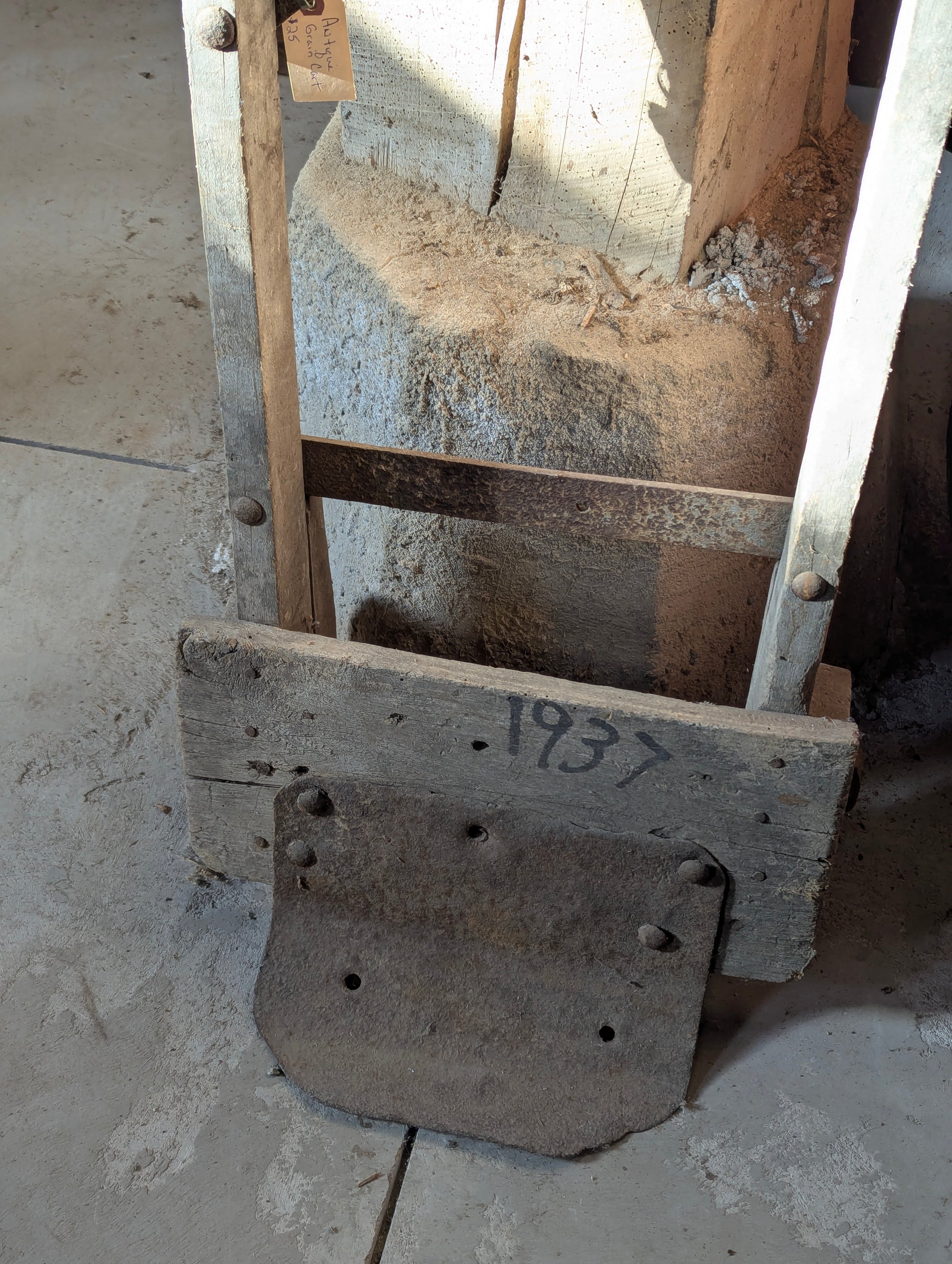 This Antique Grain Cart stands 47” high and features charming wooden wheels, showcasing a beautiful rustic farmhouse style. In original condition, it offers authentic vintage character, perfect for adding a unique accent to your space. Its sturdy design makes it ideal for creative repurposing—transform it into a coffee table, planter, or decorative display piece to bring timeless charm to your home.