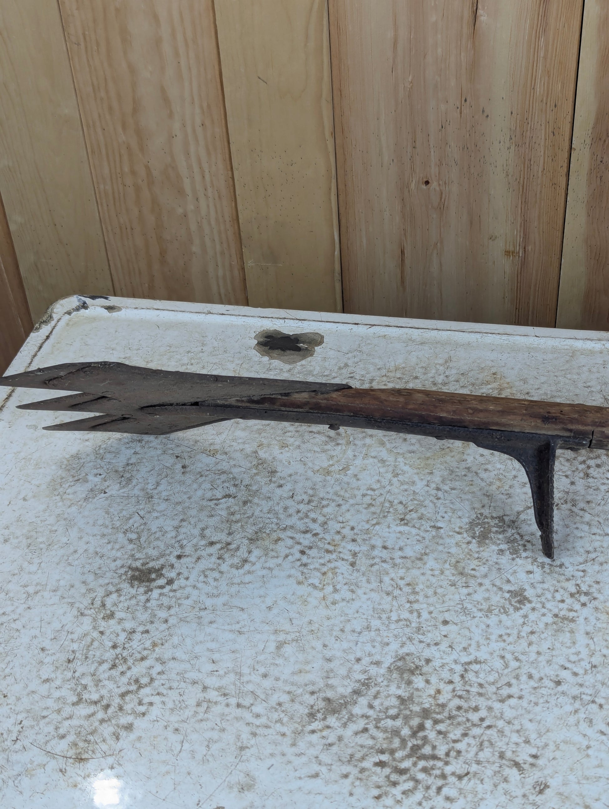 This Antique Hay Cutter features a sturdy metal base paired with a wooden handle, embodying rustic farmhouse style. Its good condition makes it a perfect decorative piece that adds vintage character and warmth to any space. Ideal for collectors or those seeking authentic rustic décor, this hay cutter brings a touch of history and craftsmanship to your home.