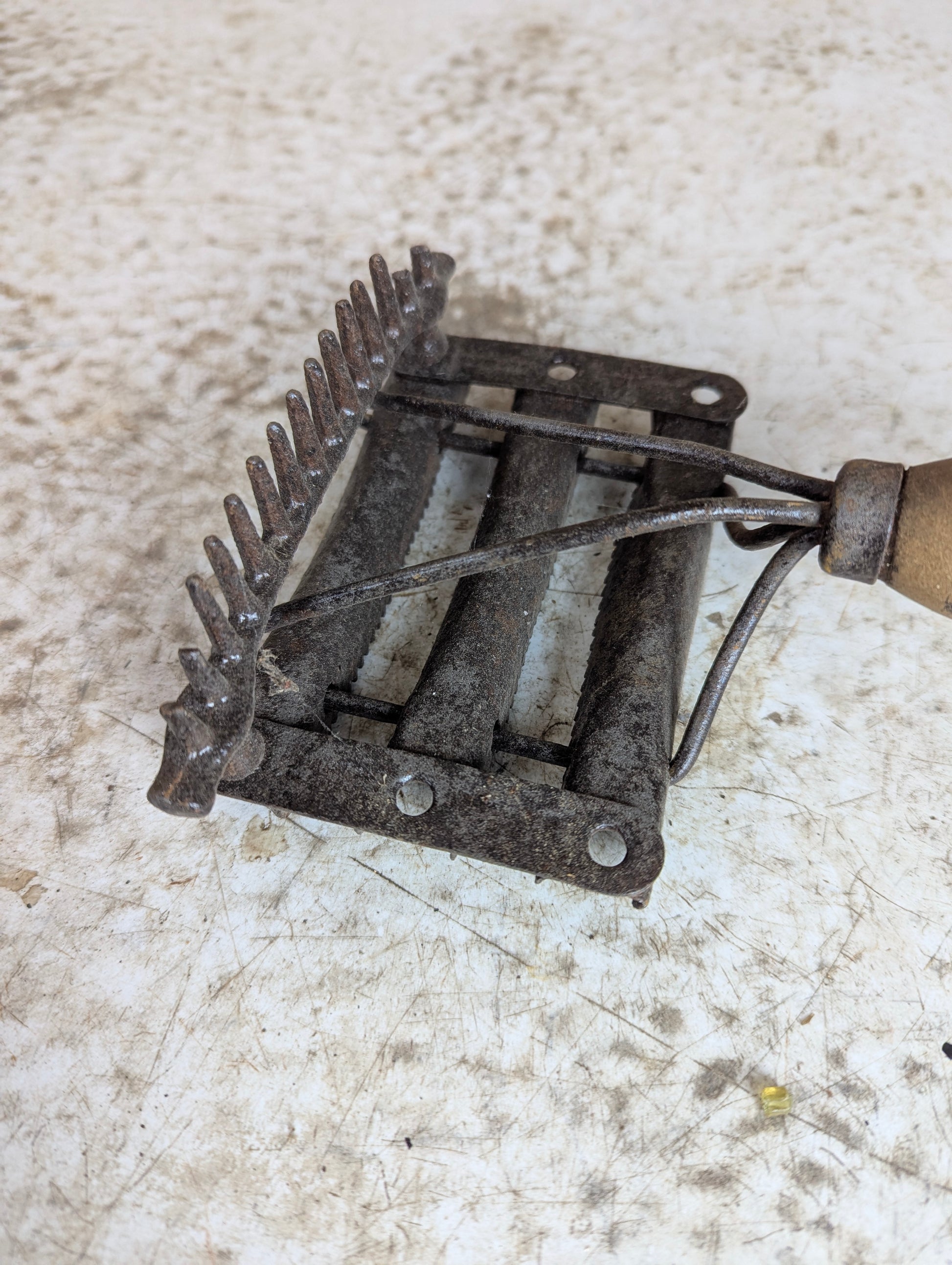 Antique Metal Horse Curry Comb with Wooden Handle