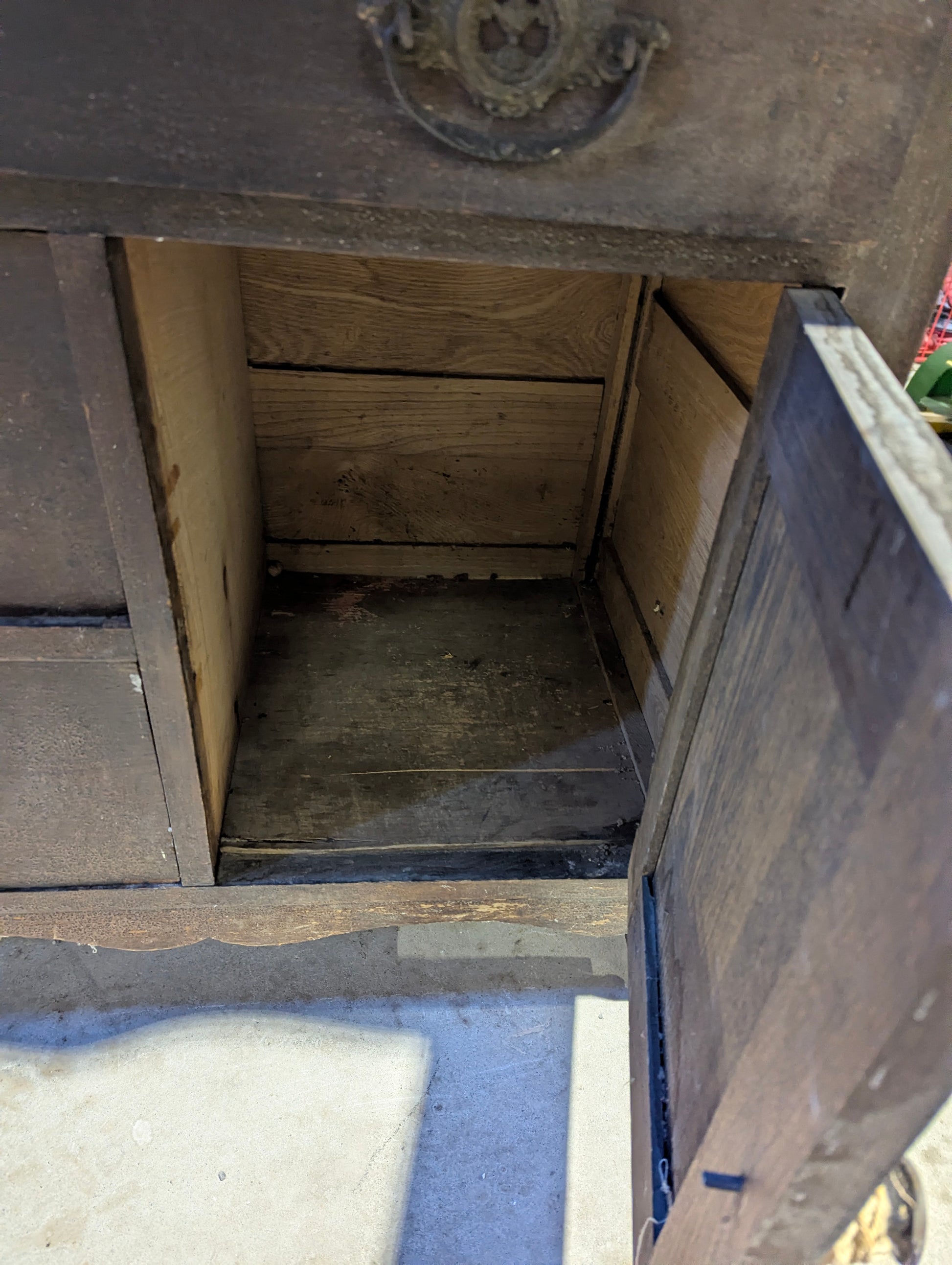 Discover authentic vintage charm with this beautifully aged oak wash stand, a functional statement piece for collectors and design enthusiasts. Featuring original hardware, three spacious dovetailed drawers, and a single door cabinet, it offers generous storage for linens and essentials. The distinctive scalloped edge adorns the top front, while an integrated towel rack adds practical elegance. Panelled sides and rolling wheels enhance its character and mobility. Measuring 32" long, 17.5" wide, and 29.25" high (52" overall), this piece showcases genuine patina and wear that speaks to its storied past. (Needs some TLC on top). Perfect for those seeking authentic period furniture with soul and history.