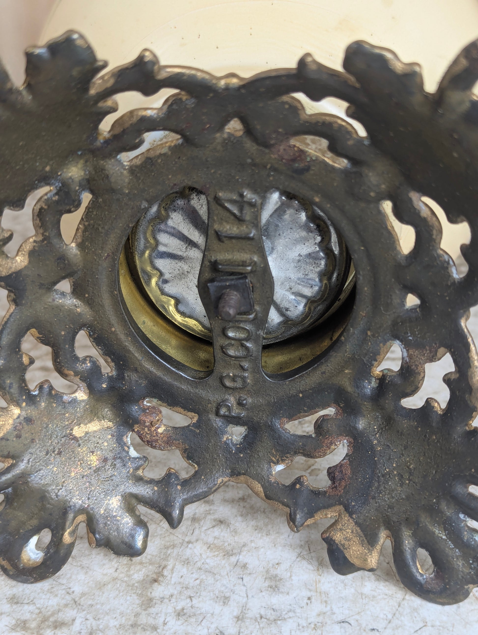 Antique P G Co. Painted Glass Parlour Oil Lamp