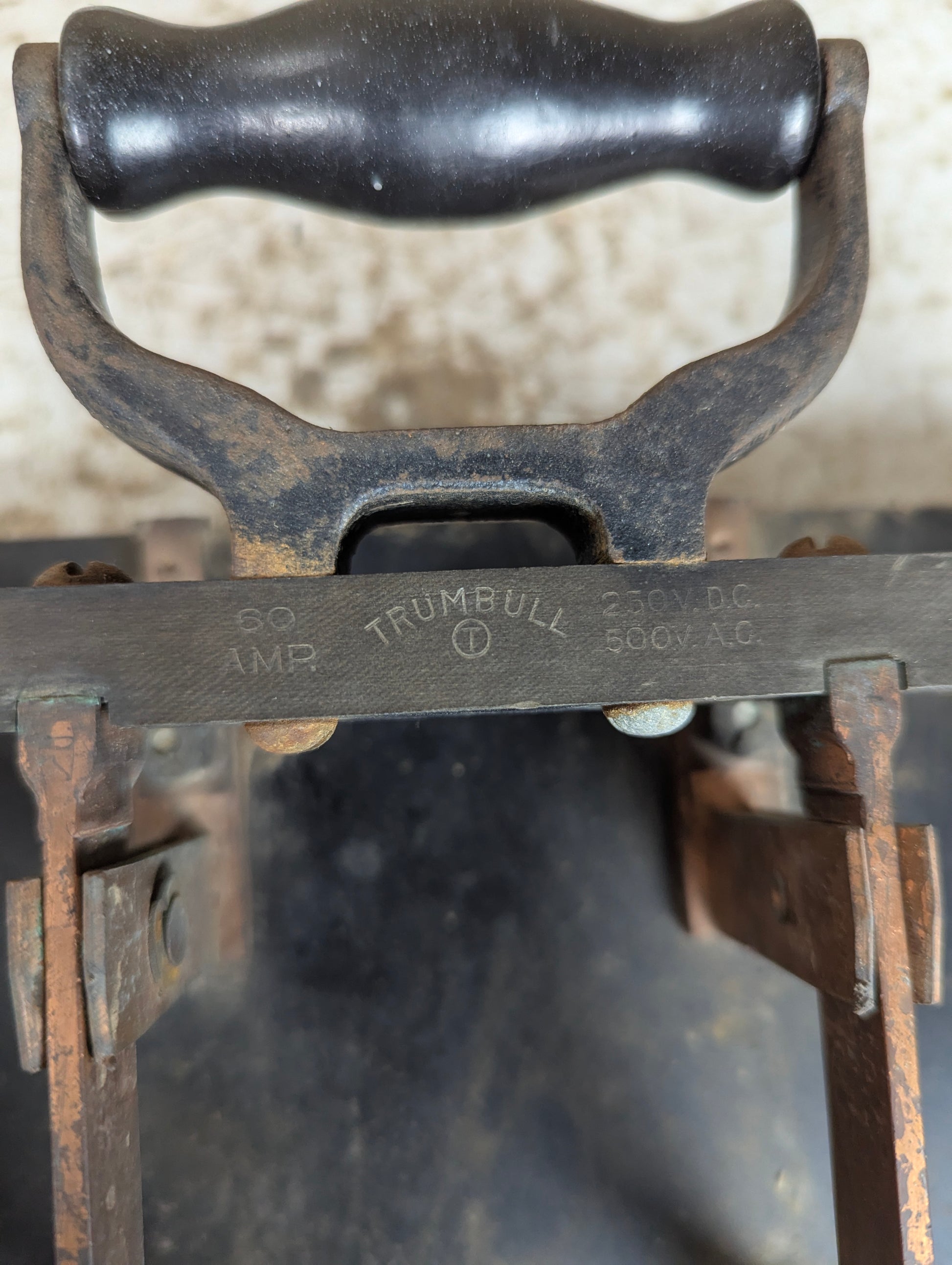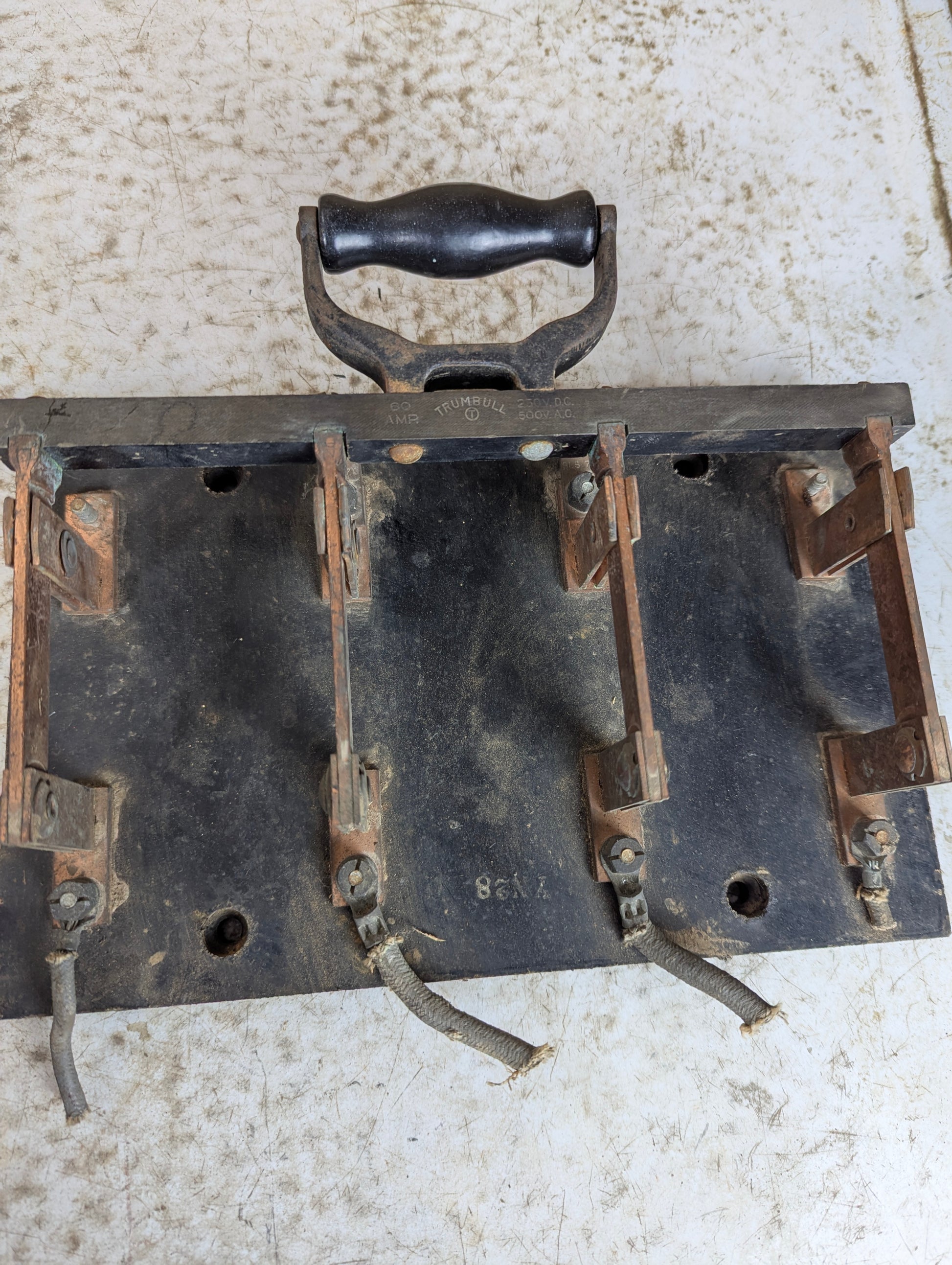 Antique Trumbull Copper Knife Switch 4 Pole Single Throw Mounted on Slate