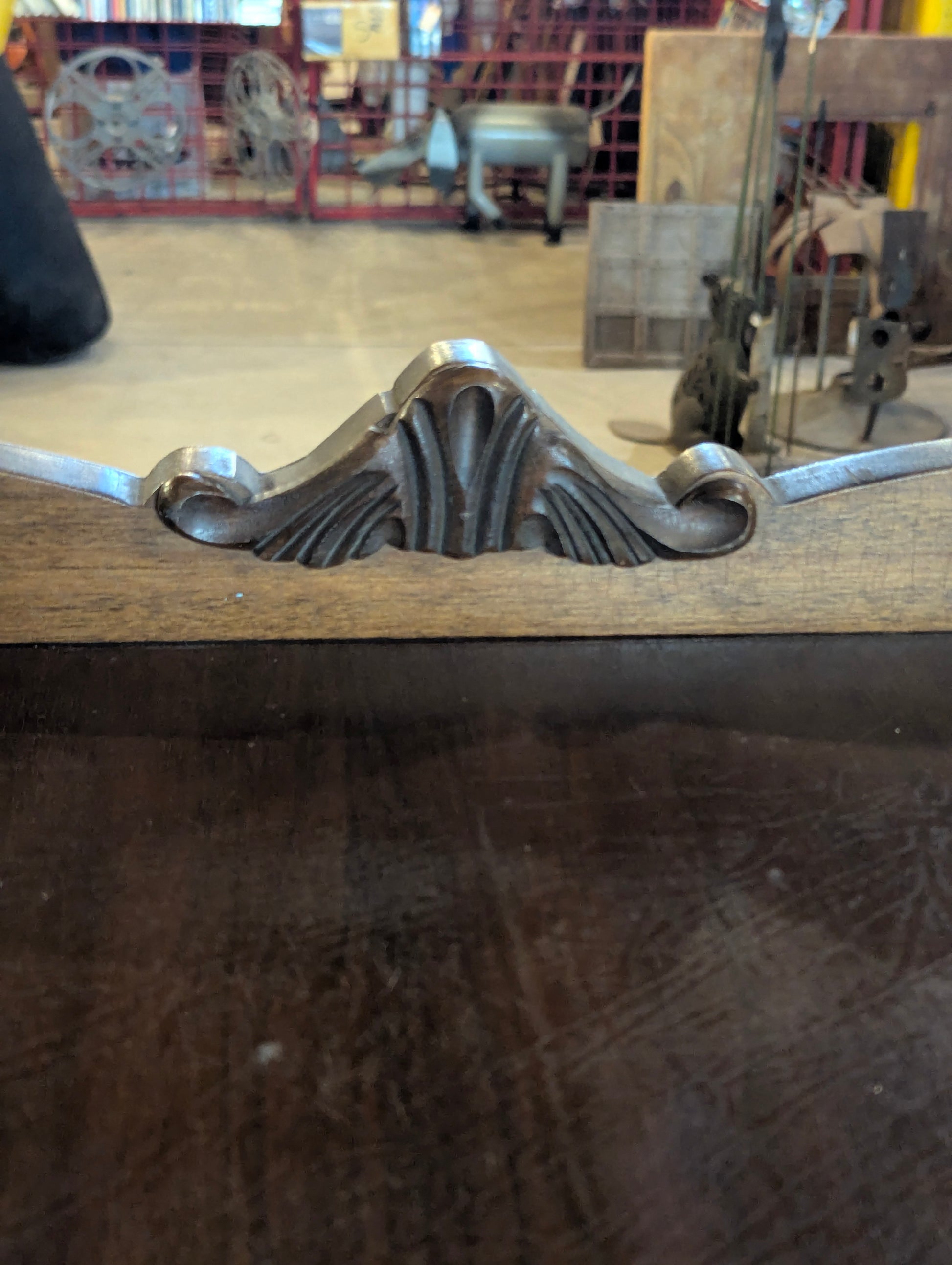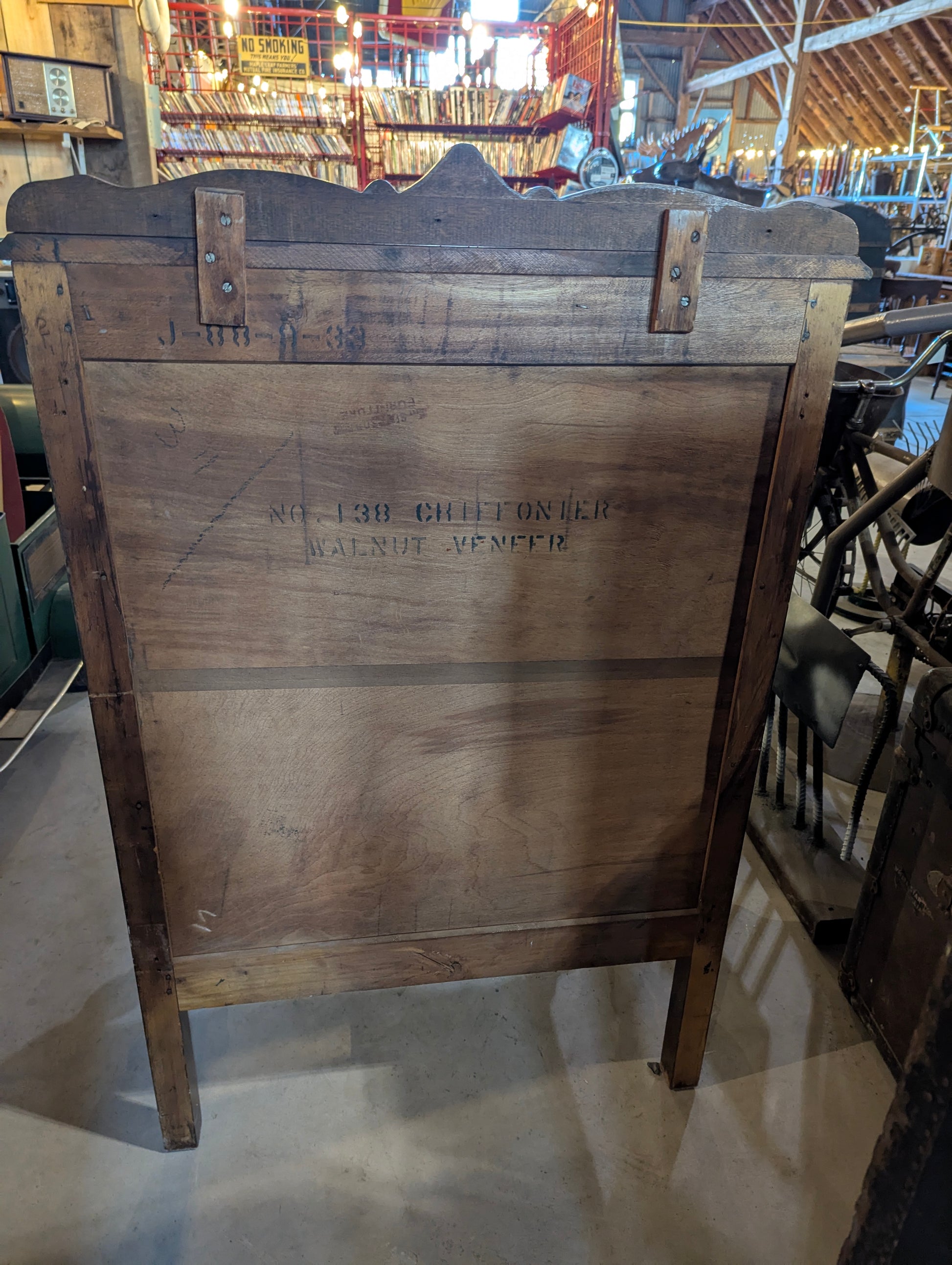 This antique walnut dresser offers timeless charm with ample storage, featuring three large drawers and one smaller top drawer. Measuring 30” wide, 17.5” deep, and 45” tall, it provides practical space for organizing your belongings. While the top needs some care and the hardware is not original, the piece impresses with elegant detailing on select drawers, making it a distinctive addition to any room. Its classic design and solid wood construction ensure both beauty and durability for years to come.