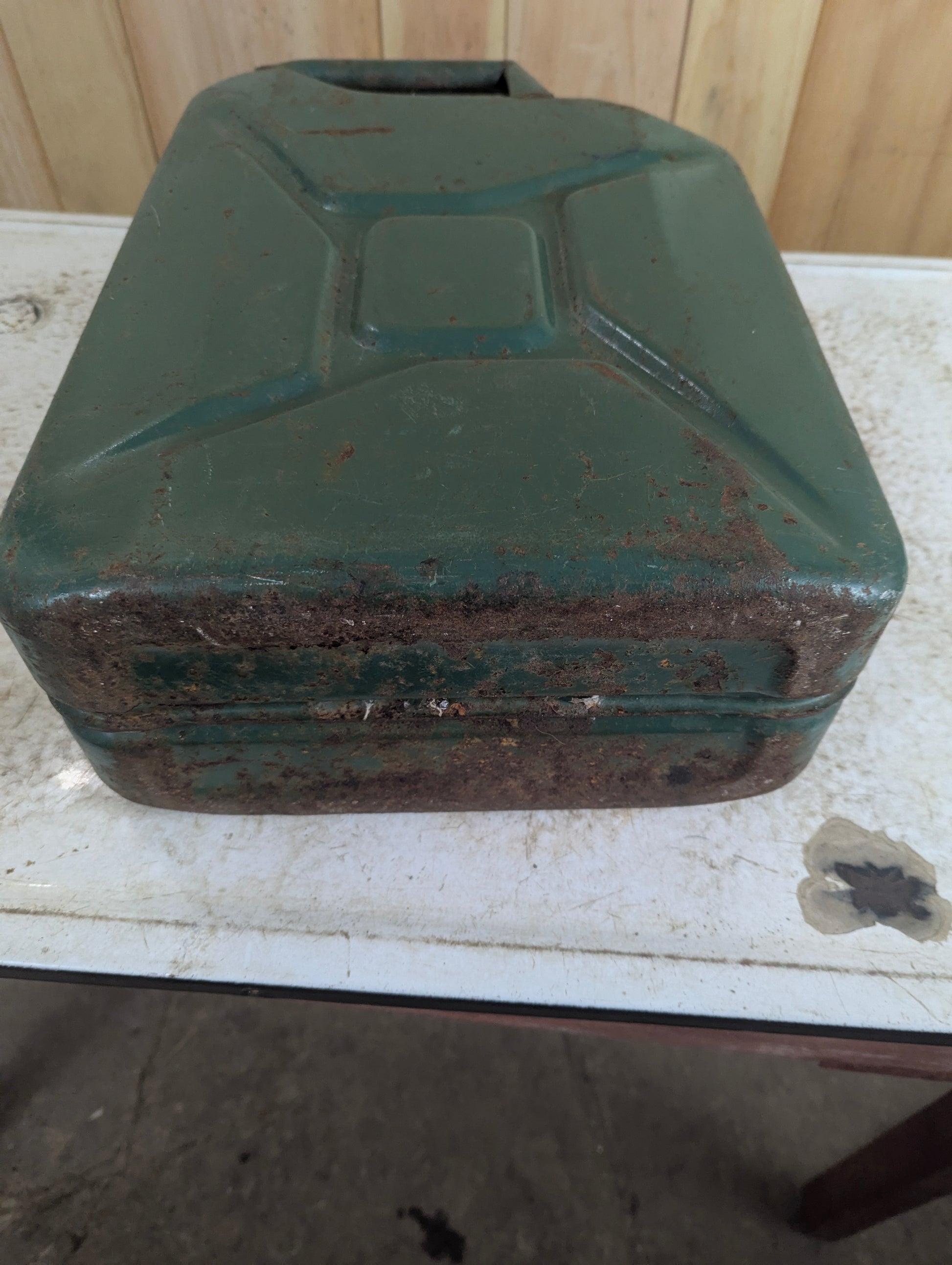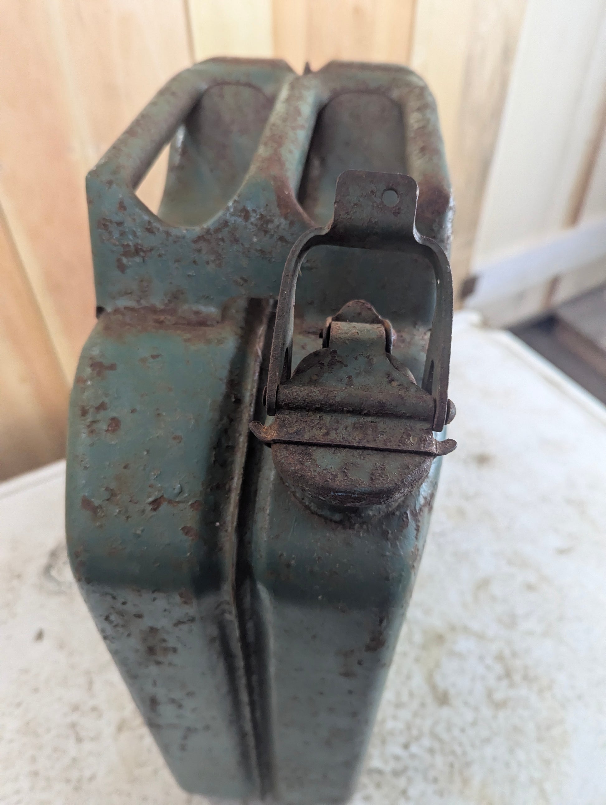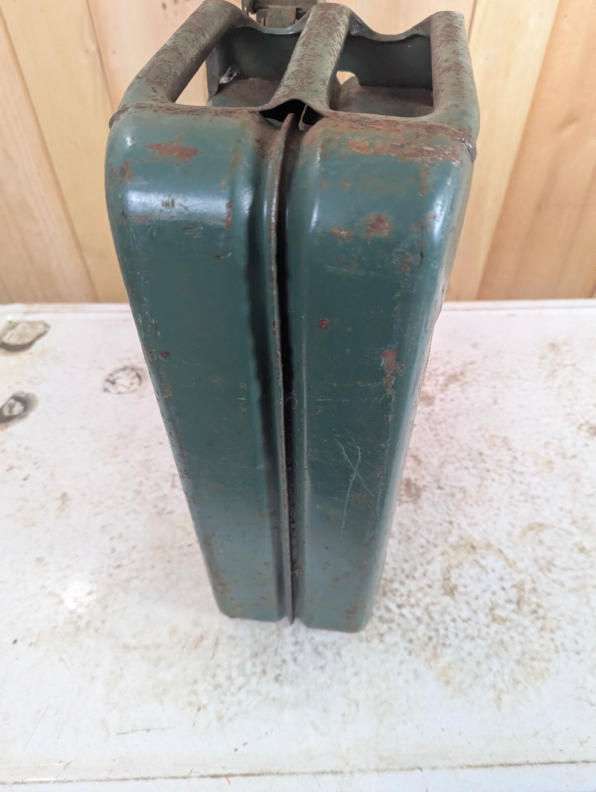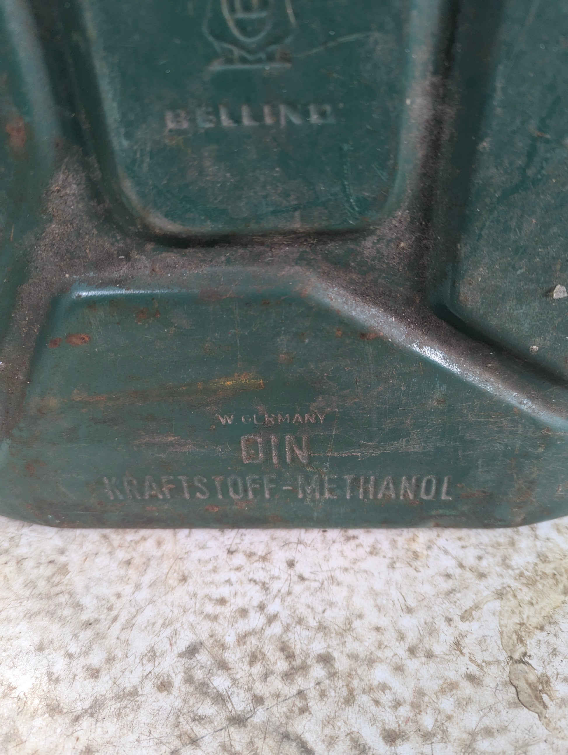 Collect a piece of history with the Bellino Metal Military Jerry Can! Made in W Germany in 1985, this sturdy can measures 18.5" x 13" x 5.5" and is in fair condition. Perfect for collectors of military memorabilia. Get yours now!