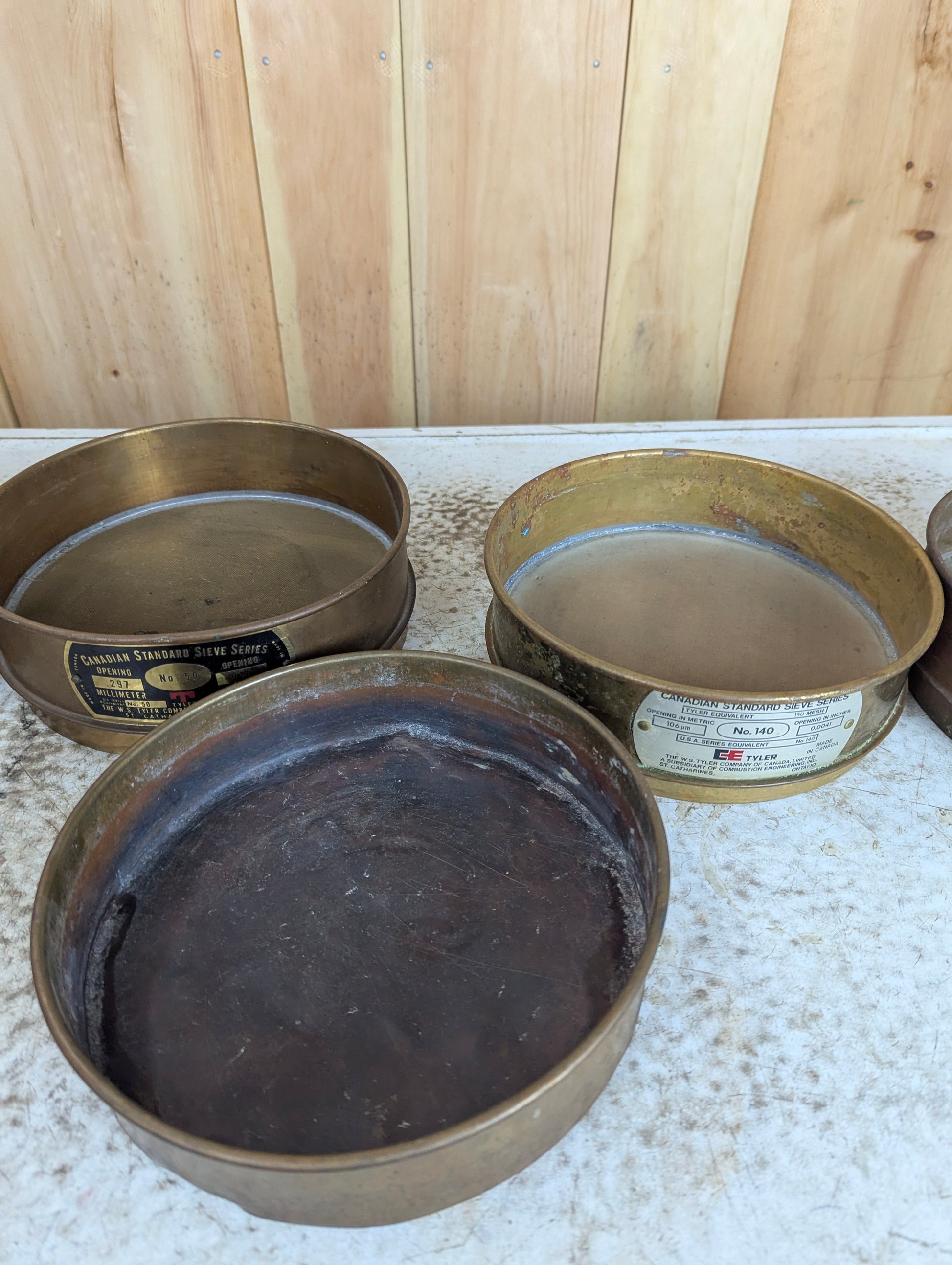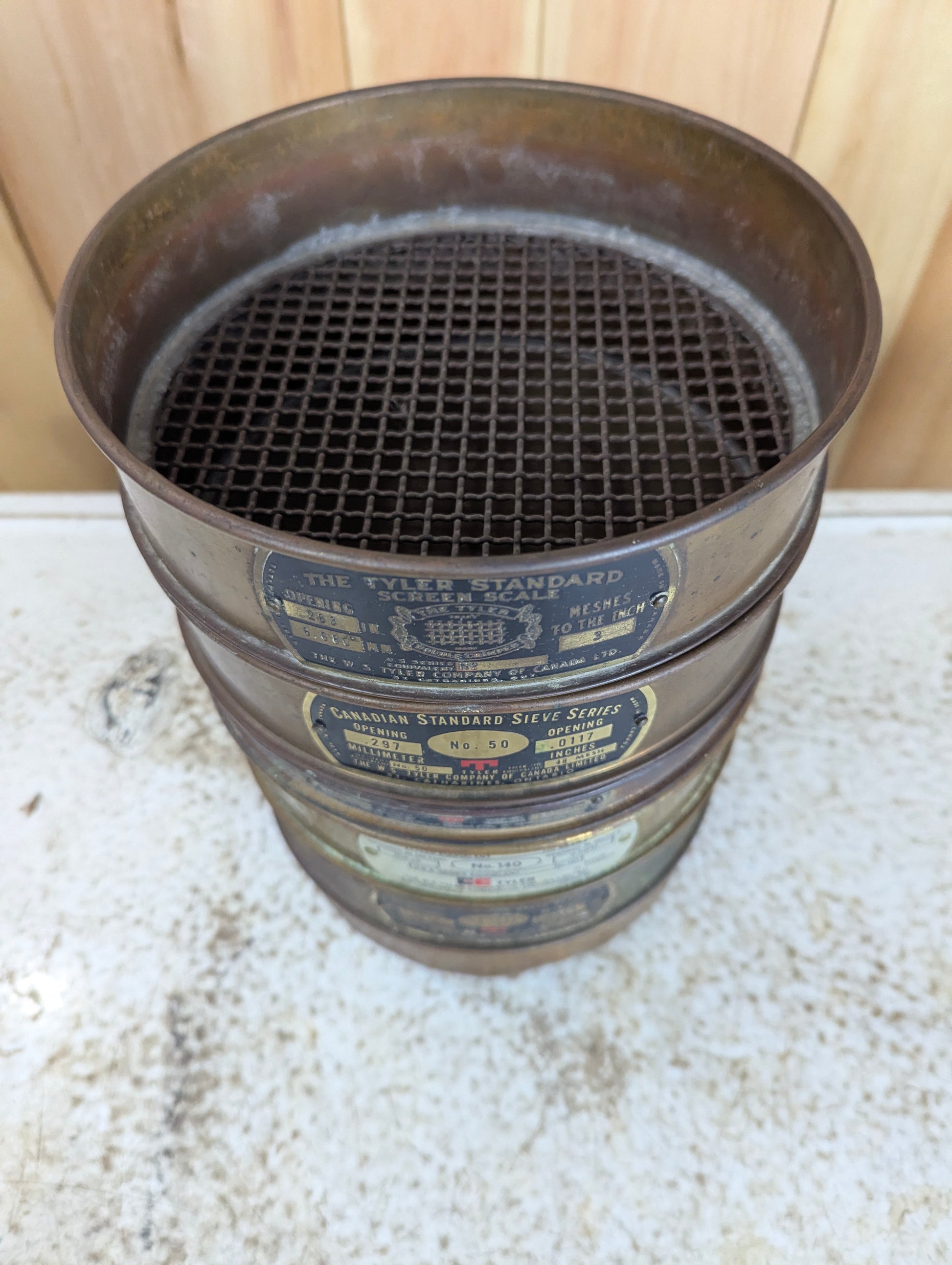 Antique W.S. Tyler Copper Sieve Set - Two #50s, #140, #200