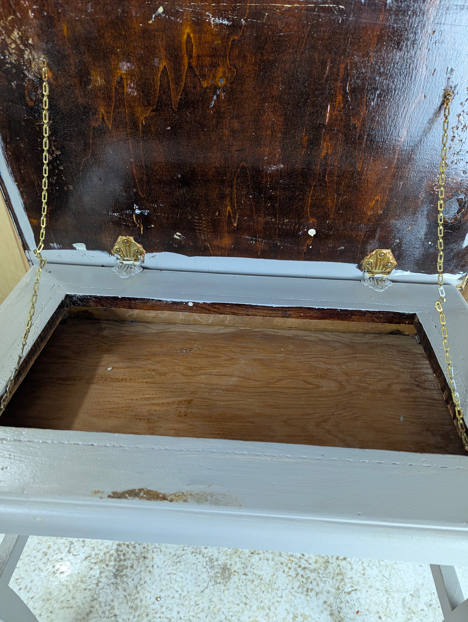 This handcrafted, refinished piano bench combines timeless design with practical storage. Featuring sturdy wooden construction and brass hardware hinges, the bench lifts up to reveal convenient storage space. Measuring 20" high with a wooden top of 24" x 16", it originally had a cane top, now expertly refinished for durability and style. Perfect for both seating and organization, it adds elegant functionality to any room.