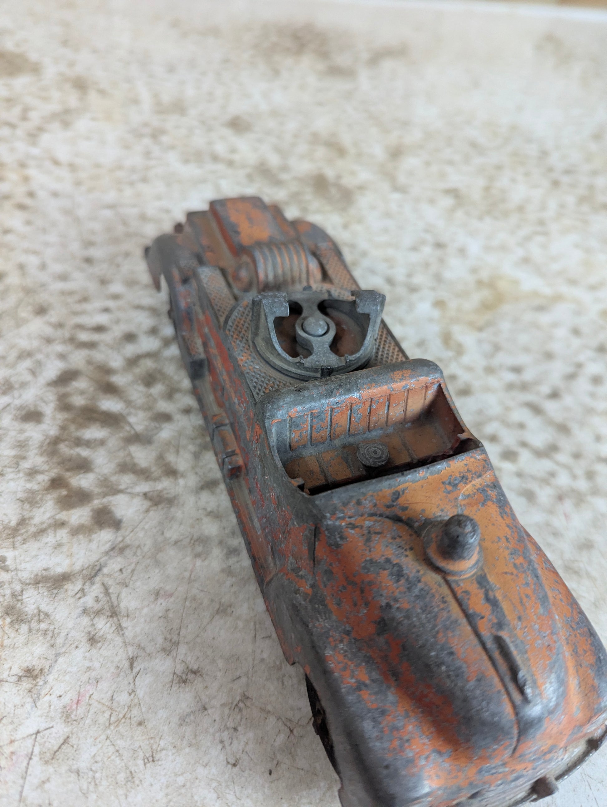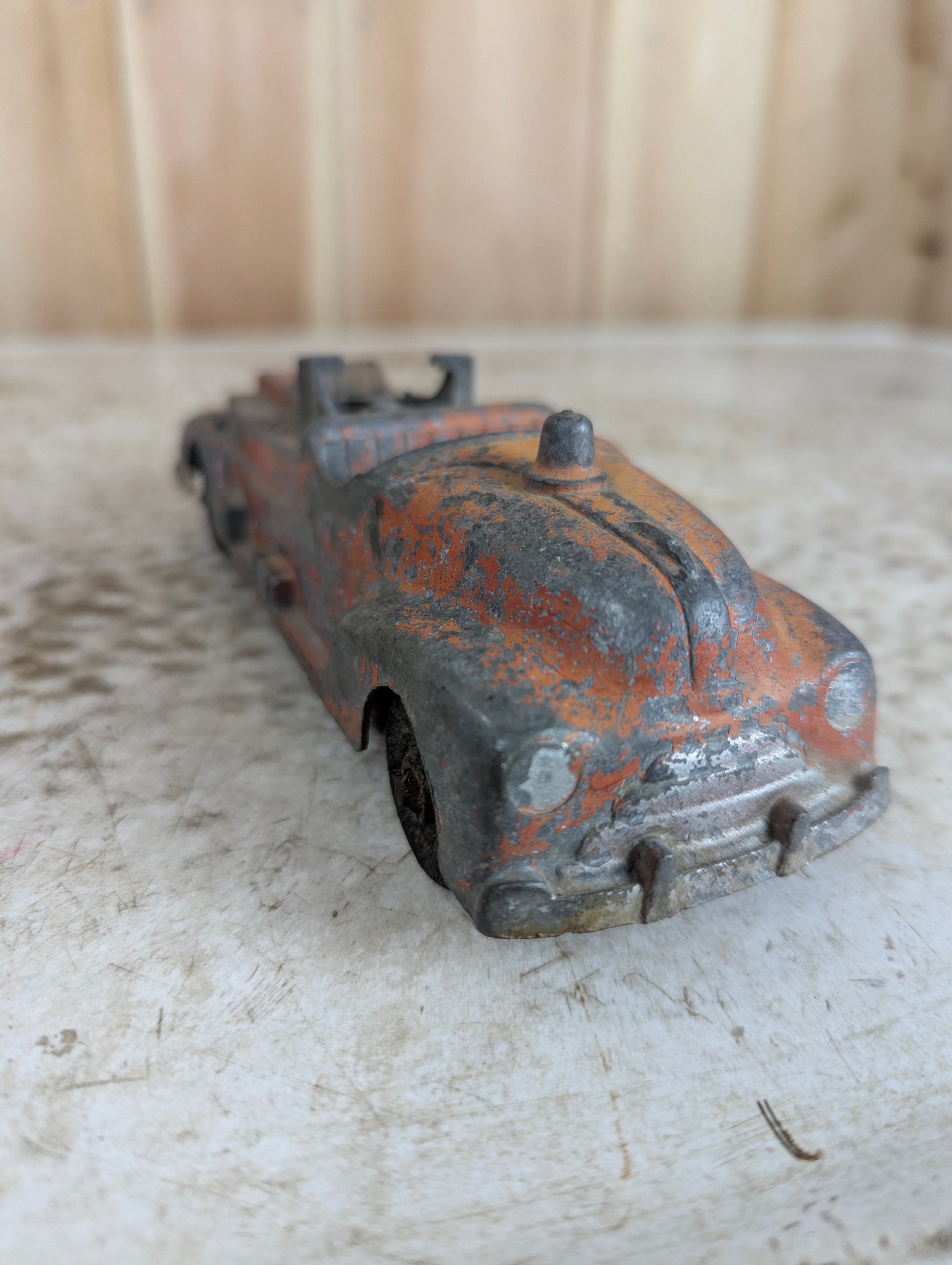 Vintage Hubley Kiddie Toy #463 metal fire truck, a genuine American-made collectible from a bygone era. This classic 7.5" piece showcases authentic patina and wear consistent with its age, adding character and historical appeal. Originally equipped with a fire hose accessory (now missing), the truck retains its iconic design and sturdy metal construction. Perfect for serious toy collectors, vintage enthusiasts, or anyone seeking an authentic piece of mid-century Americana. A rare find that captures the nostalgia and craftsmanship of classic toy manufacturing.