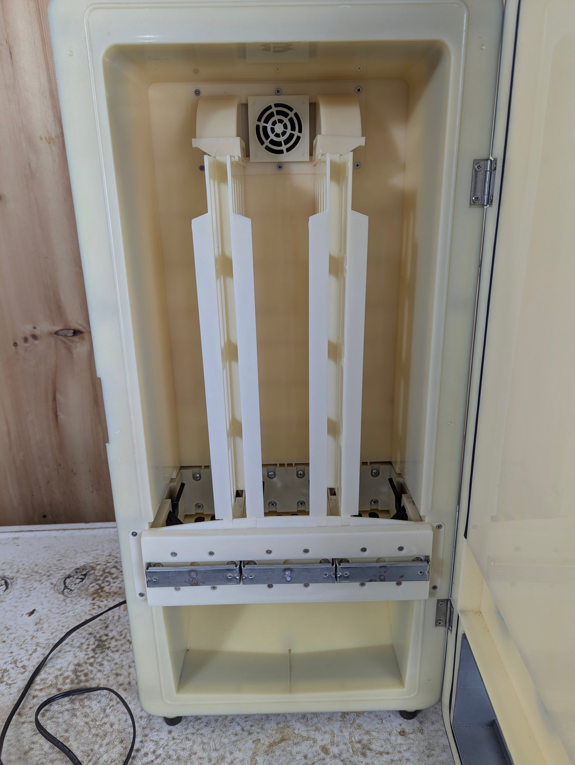 The Ice 3 Personal Vending Machine holds up to 18 cans and is in good used condition, fully functional and ready to use. Its compact size—26” high, 12” wide, and 10” deep—makes it ideal for man caves, RVs, cottages, or any small space. This electric vending machine offers easy access to your favorite drinks, bringing convenience and style wherever you place it. Upgrade your space with this practical and sleek beverage solution.