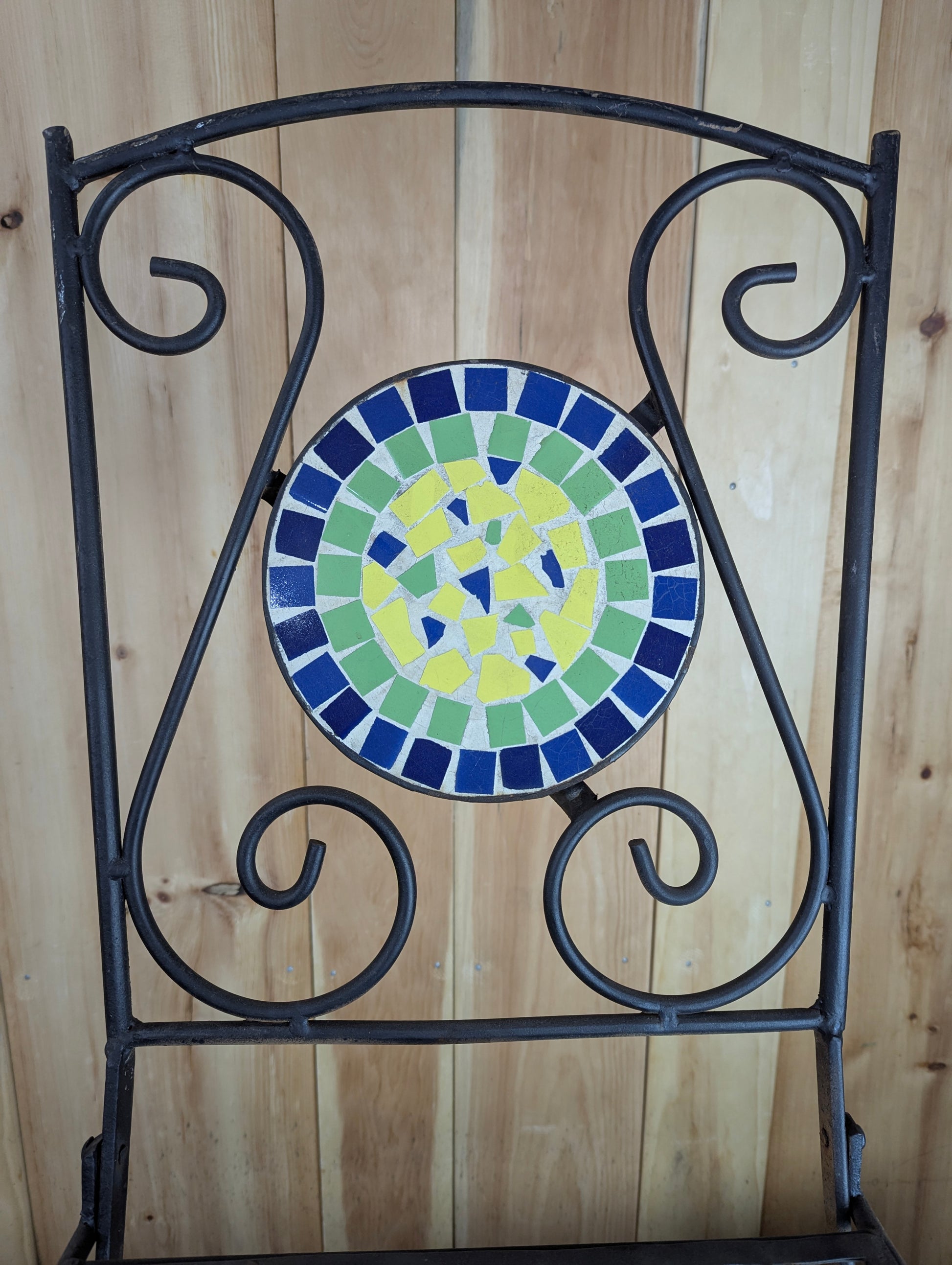 Maximize your seating without sacrificing space. This sturdy metal folding bistro chair combines classic mosaic charm with practical functionality. Its durable construction handles regular use while the compact foldable design makes storage and transport effortless—perfect for patios, balconies, or small apartments. Enjoy café-style comfort that adapts to your lifestyle.