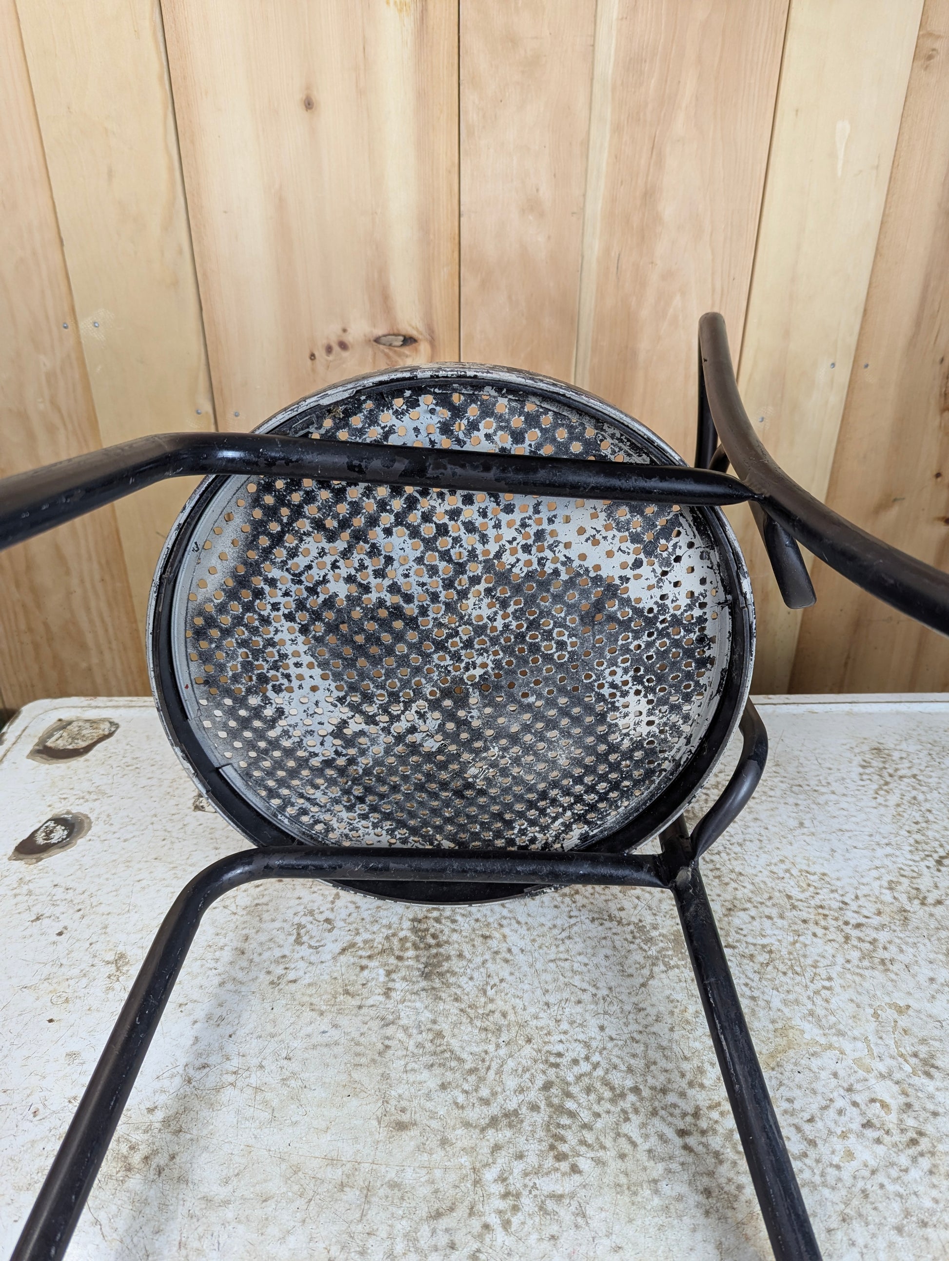 This Metal Outdoor Chair features a stylish cane-patterned metal seat, combining durability with classic design. Standing 18” high at the seat and 34” in total back height, it offers comfortable seating for your outdoor space. In good used condition, it’s a sturdy and attractive addition to your patio, garden, or deck, blending functionality and timeless style effortlessly.