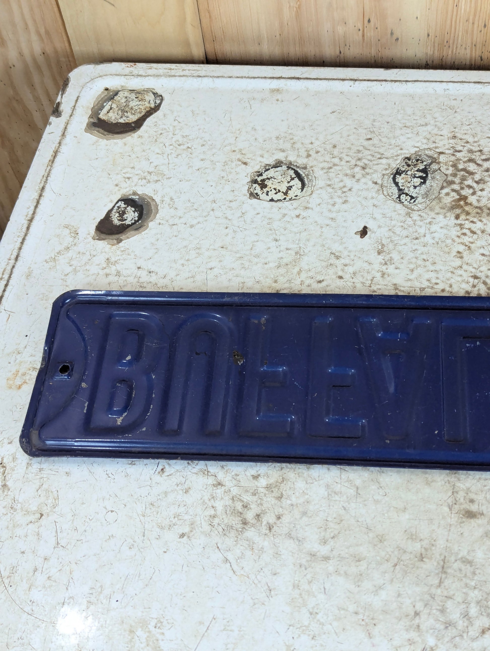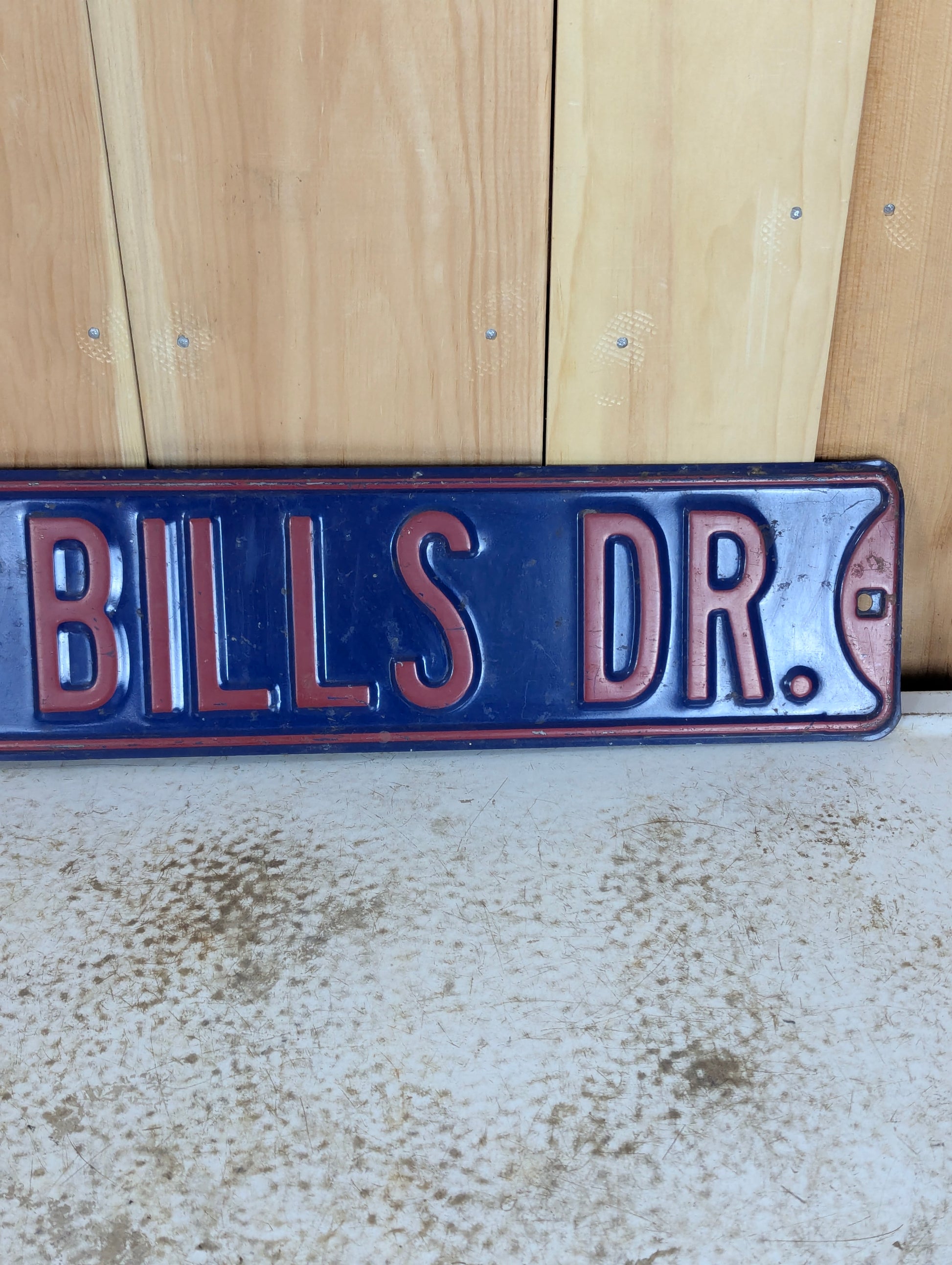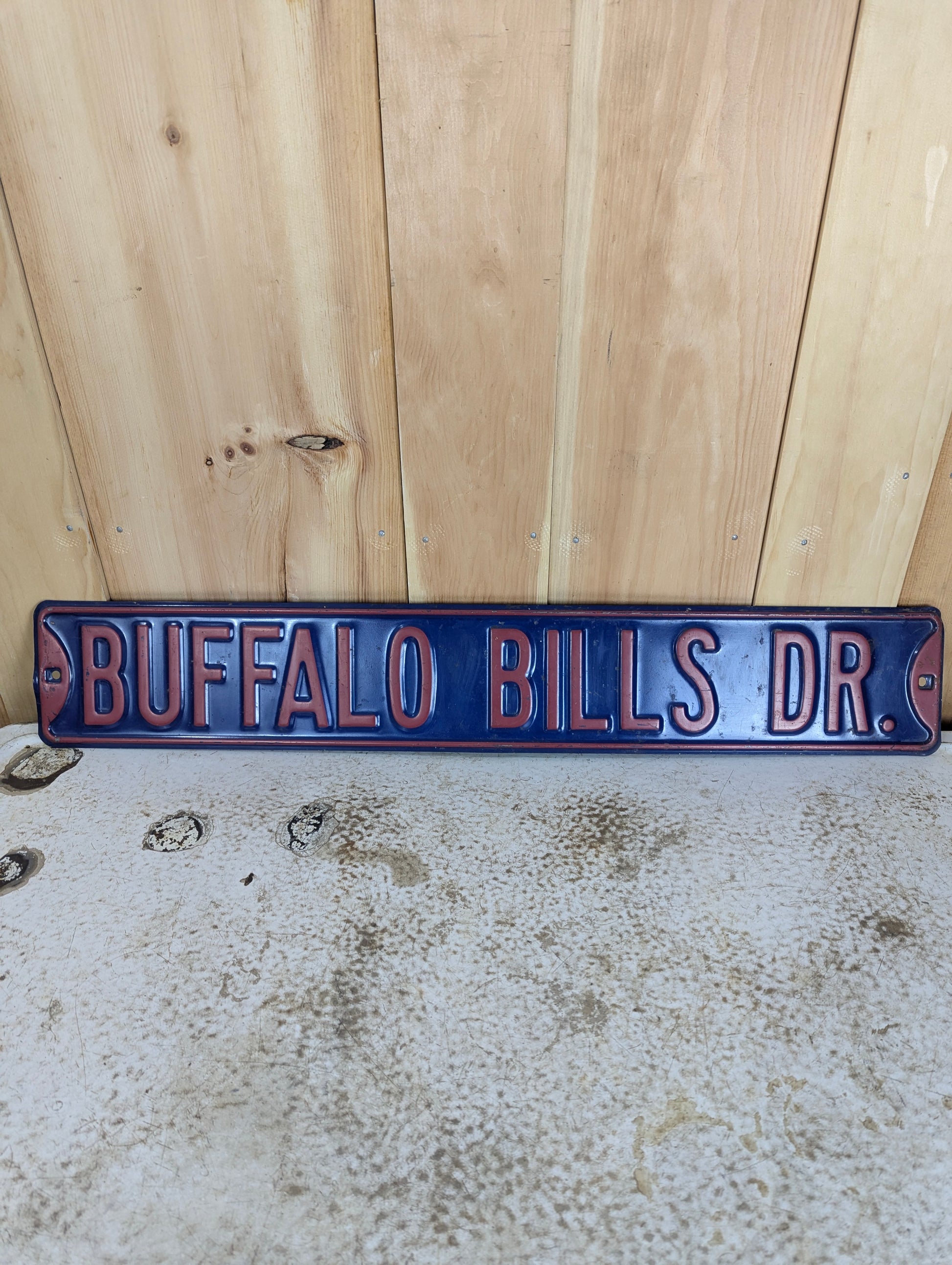 Showcase your team pride with this NFL Buffalo Bills Dr. Metal Sign, perfect for any man cave, workshop, or home bar. Featuring embossed lettering on a heavy, durable metal surface, this collectible piece measures 36” x 6” and adds a bold, authentic touch wherever it’s displayed. Its good used condition contributes to its unique character, making it a standout addition for fans and collectors alike.