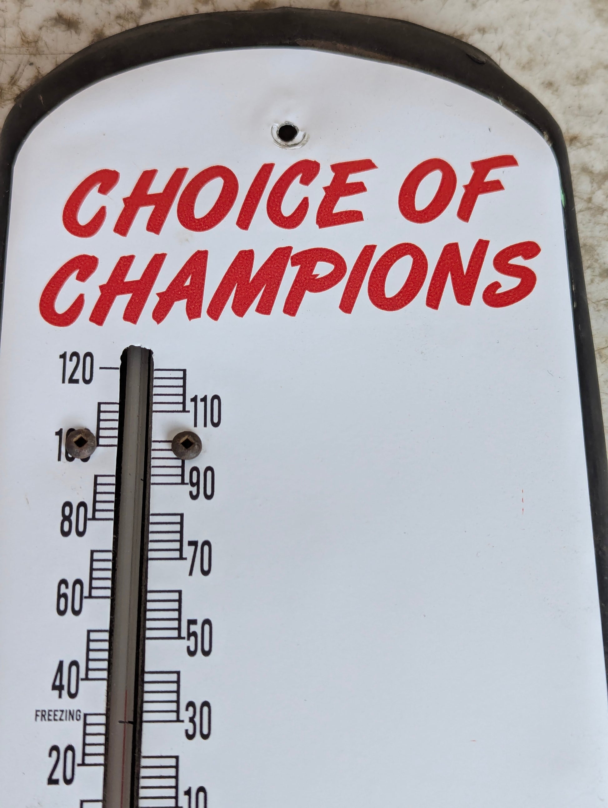 This vintage-style Oilzum thermometer replica captures the nostalgic charm of classic automotive memorabilia. Crafted in good condition, it features authentic period detailing that appeals to collectors and enthusiasts alike. The wall-mounted design makes it an eye-catching addition to garages, man caves, or vintage-themed spaces. Perfect for those seeking authentic-looking collectibles without the premium price tag of originals, this replica delivers character and conversation-starting appeal to any room.