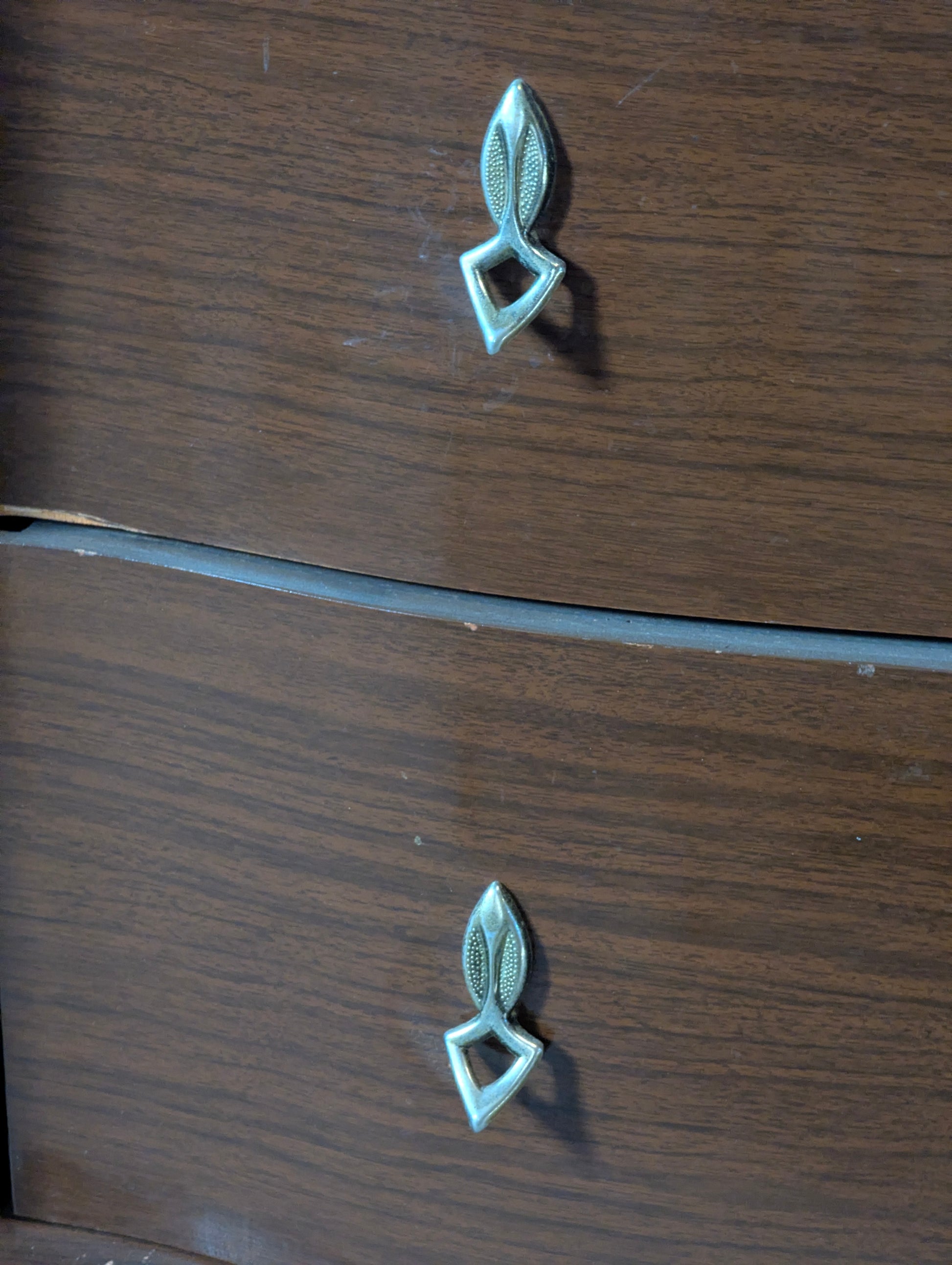 Upgrade your bedroom with our Retro 4 Drawer Dresser! With ample storage space it's a great addition to any room. Don't let the signs of wear fool you, it's in good used condition and measures 34” long, 18” deep, and 43” high. Embrace vintage vibes and declutter your space today!