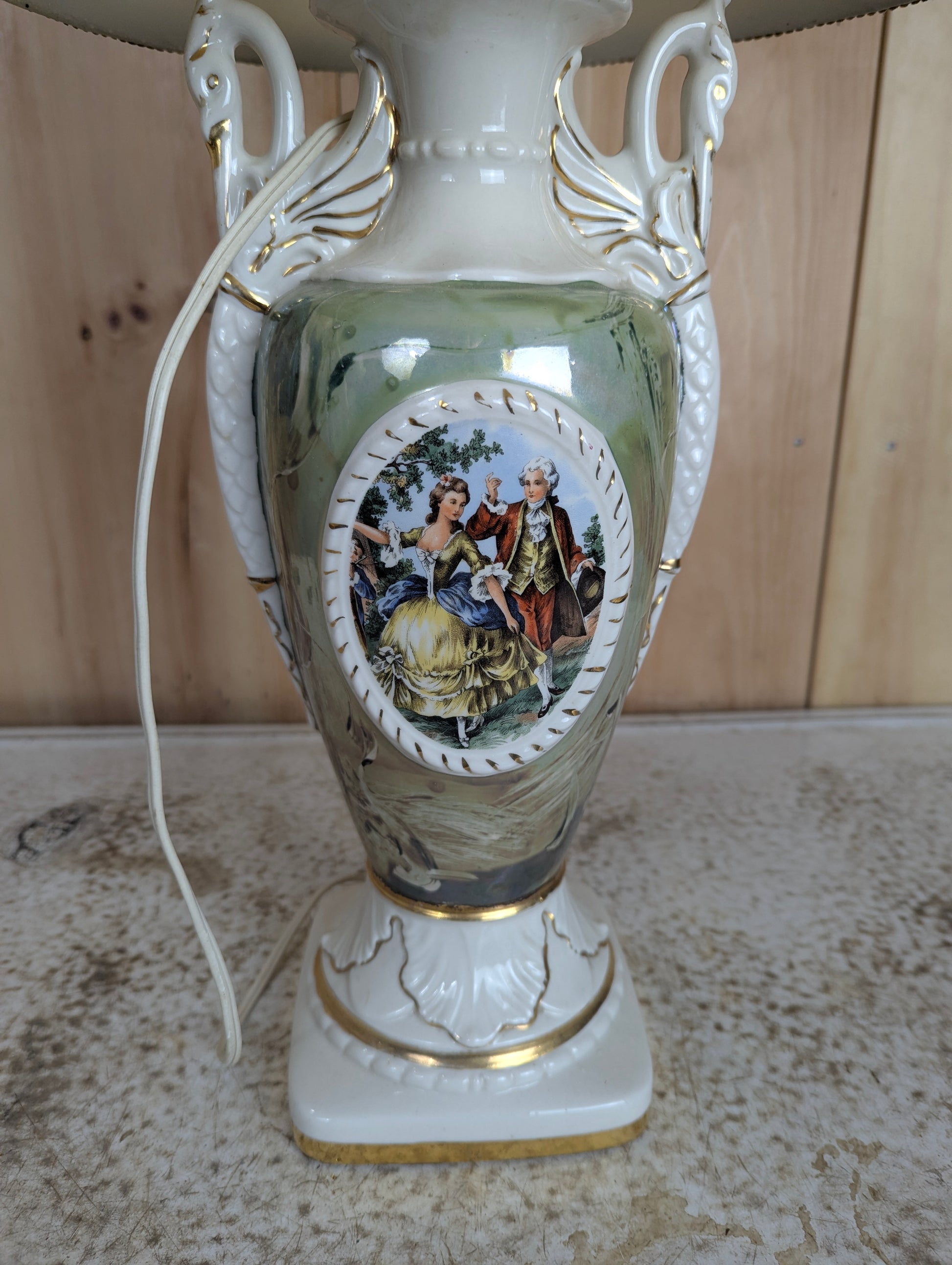 This charming Retro Green Ceramic Table Lamp stands 25” tall with a sturdy 6.5” x 5” base, making it a perfect accent for any room. In good used condition and fully functional, it adds both style and practical lighting to your home décor. Its vintage appeal complements a variety of interiors, creating a warm and inviting atmosphere. Elevate your space effortlessly with this classic piece.