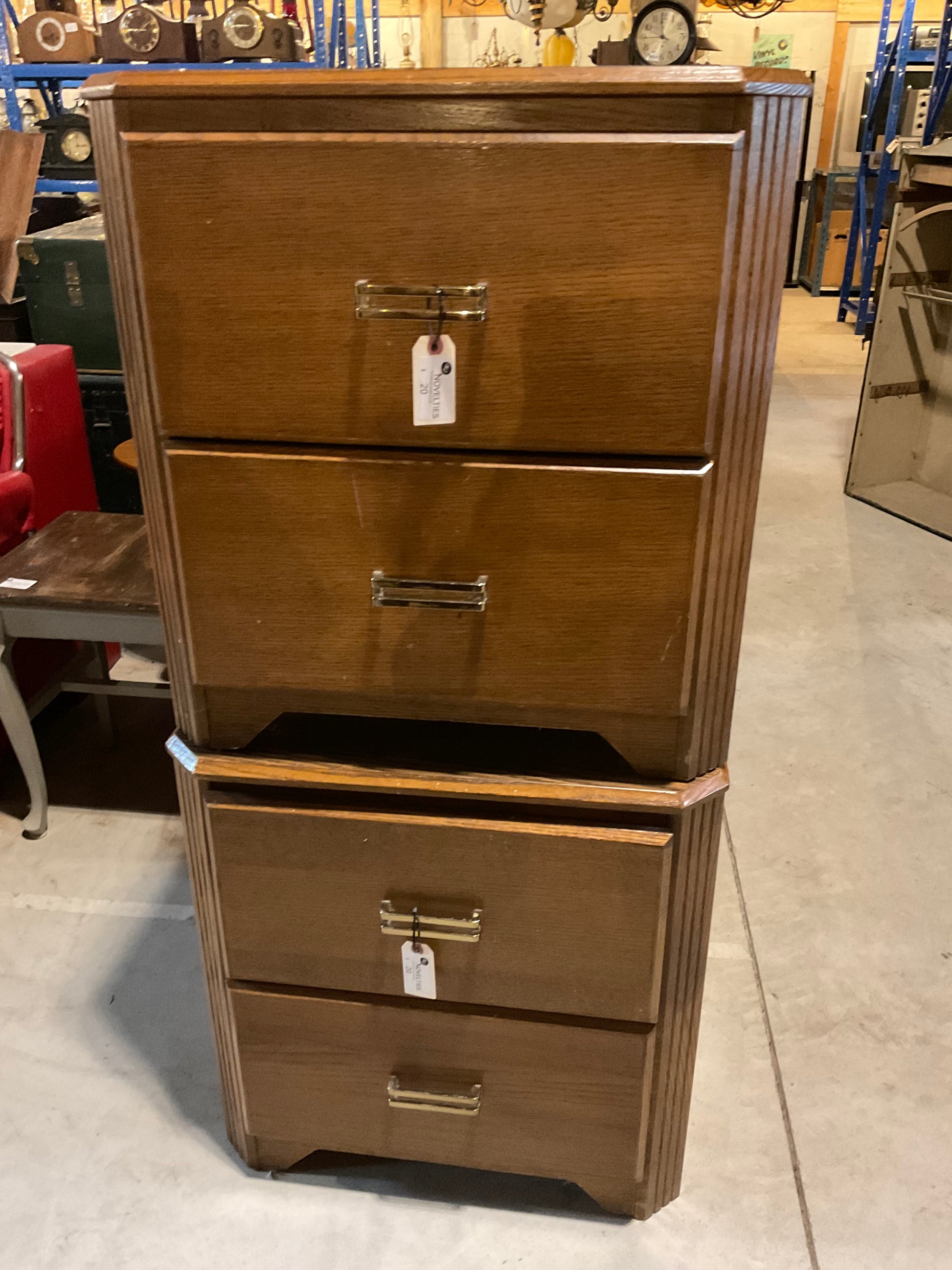 These vintage 2-drawer wooden night stands offer sturdy, deep storage for your bedroom essentials. Each piece measures 23” wide, 17” deep, and 24.5” high, providing ample space while maintaining a heavy, durable build. Their timeless design and generous drawers make them perfect for organizing bedside items with style and reliability. Ideal for adding classic charm and functional storage to your space. Priced at $20 each!
