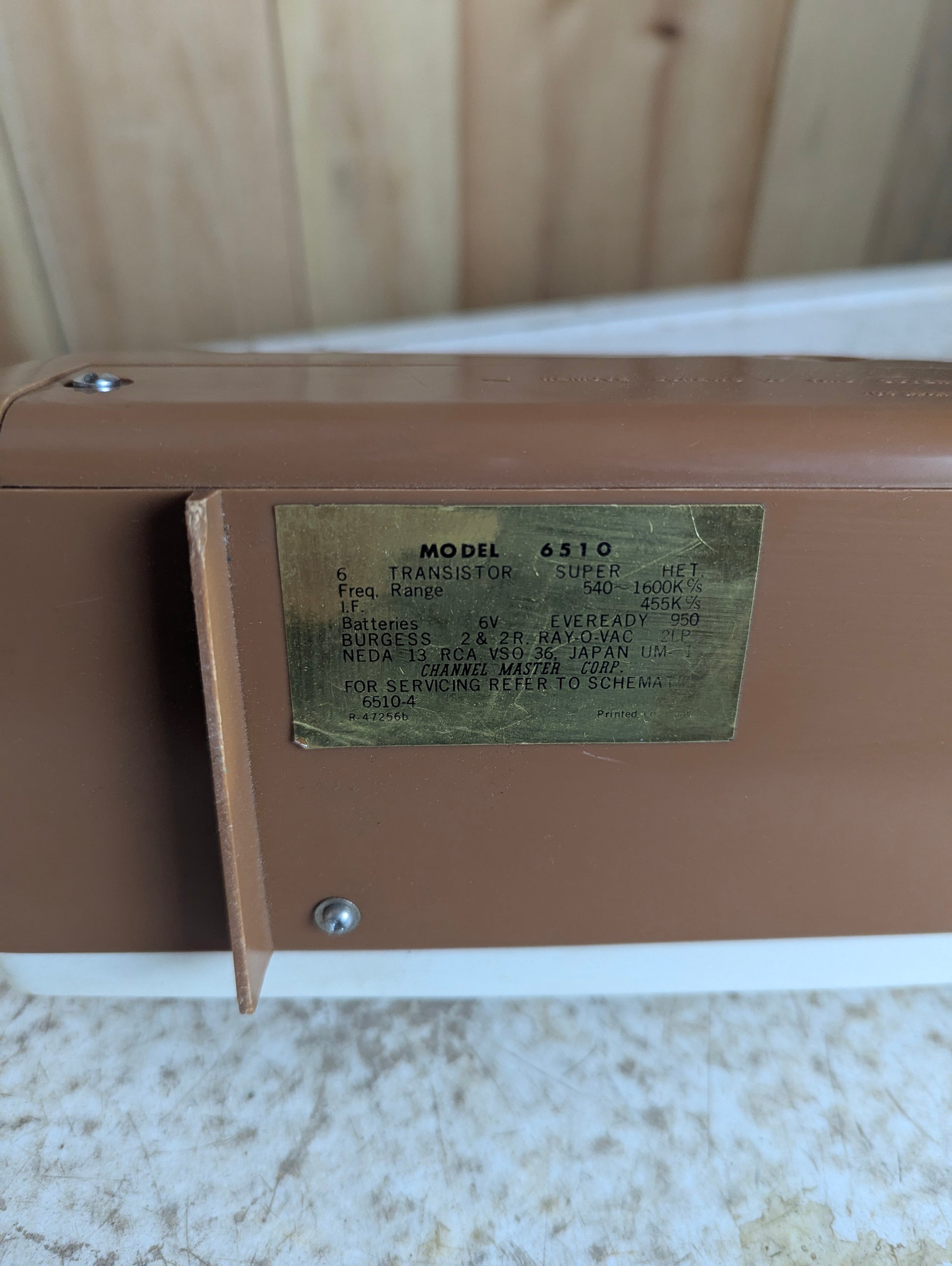 Experience nostalgia with this Vintage 6510 Channel Master 6 Transistor AM Radio. In good used condition and fully functional, this battery-operated radio requires 4-D batteries to deliver classic AM sound. Its sleek design and well-preserved plastic body make it a standout collectible piece even though it doesn’t have a carrying handle. Perfect for enthusiasts seeking a stylish and reliable vintage radio.
