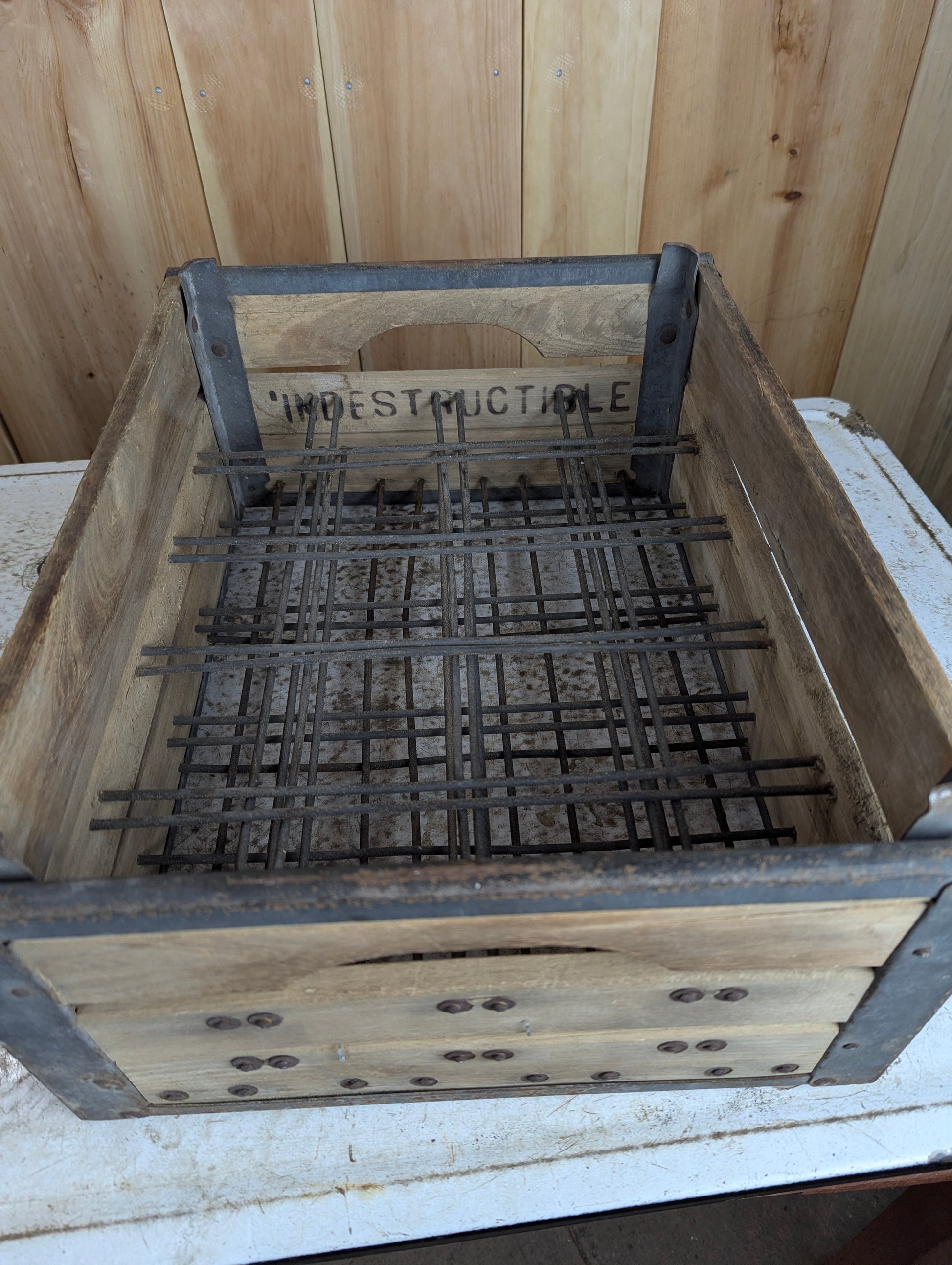 This Vintage DeLaval Dairy Crate is a perfect blend of functionality and nostalgic charm. Constructed with sturdy metal edges, sides, and corners, it offers durability and a timeless industrial look. Equipped with convenient carrying handles on each side and a metal rack inside, it’s ideal for secure storage. Measuring 19” x 18” with an 8” height, it’s stackable when empty, saving you space. Whether you’re looking to organize your home or add a unique collectible piece, this crate delivers both practical benefits and vintage appeal.