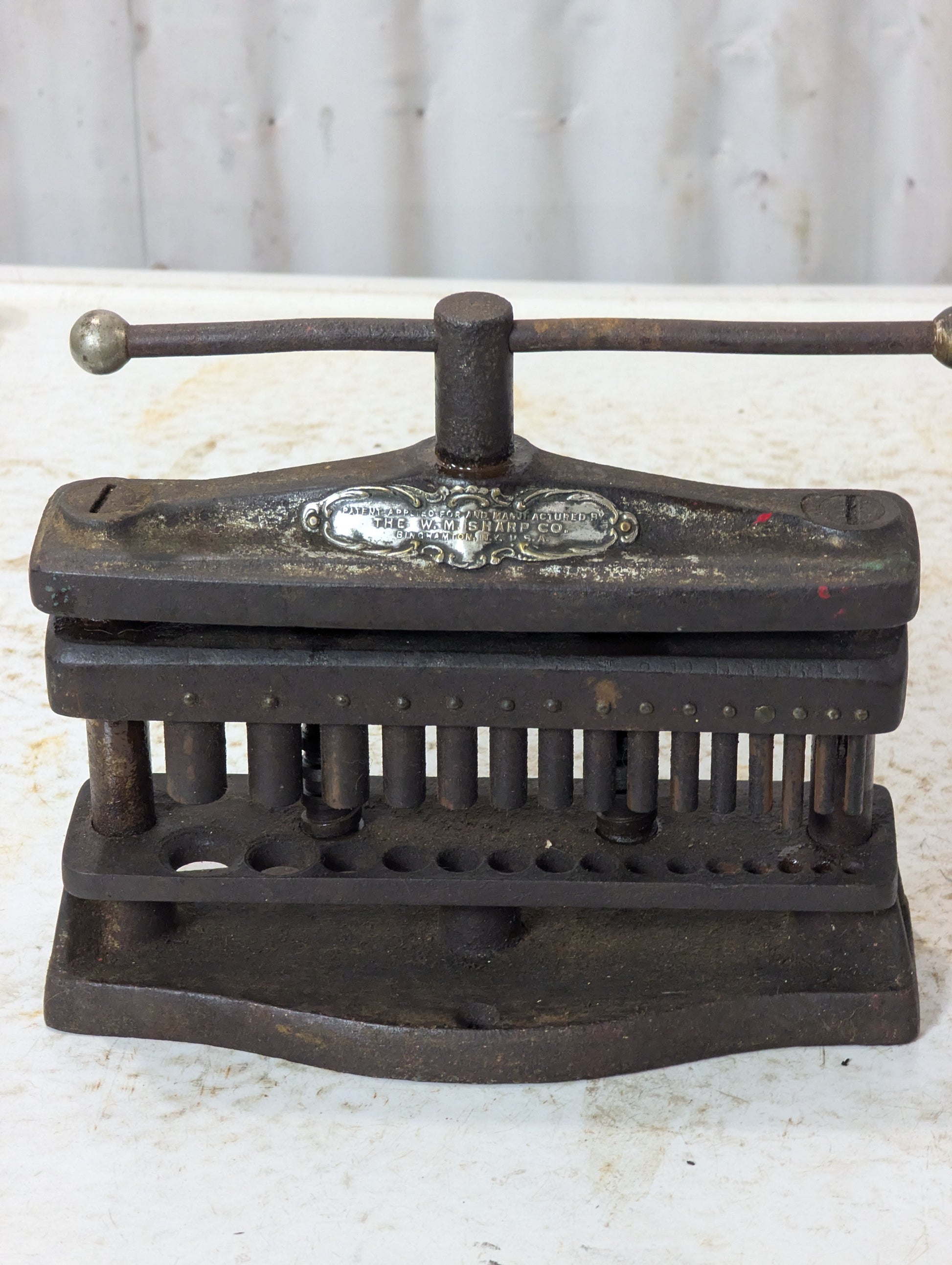 Elevate your dental collectibles with this authentic Vintage Dental Crown Press Maker from the 1900s. Crafted by the renowned W. M. Sharpe Co. of Bingham, N.Y., this rare piece of dental history measures 9" x 4" with a height of 8". In good condition, this unique apparatus represents an important era in dental craftsmanship. Perfect for collectors of medical antiques or dental professionals seeking a conversation piece with genuine historical significance.