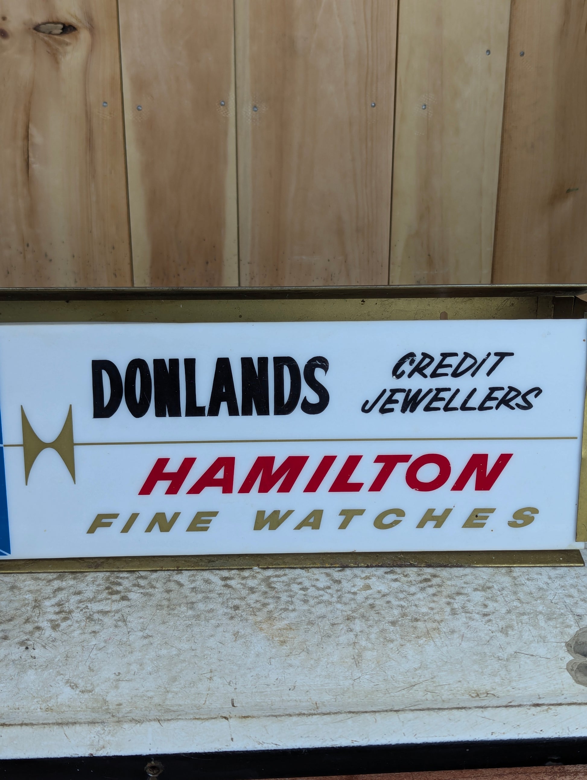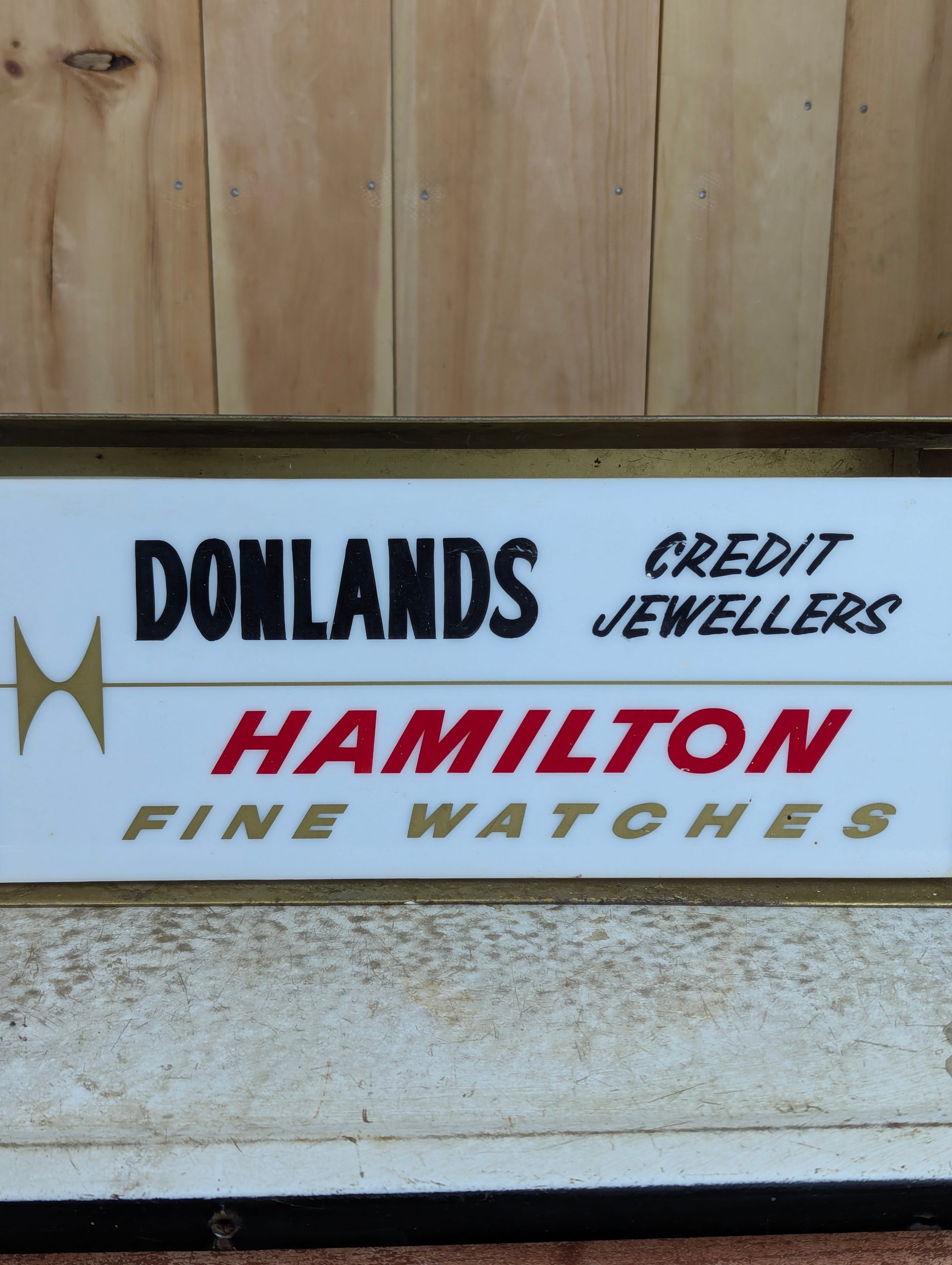 Vintage Donlands Credit Jewellers Hamilton Fine Watches Light Up Sign with Built In Clock