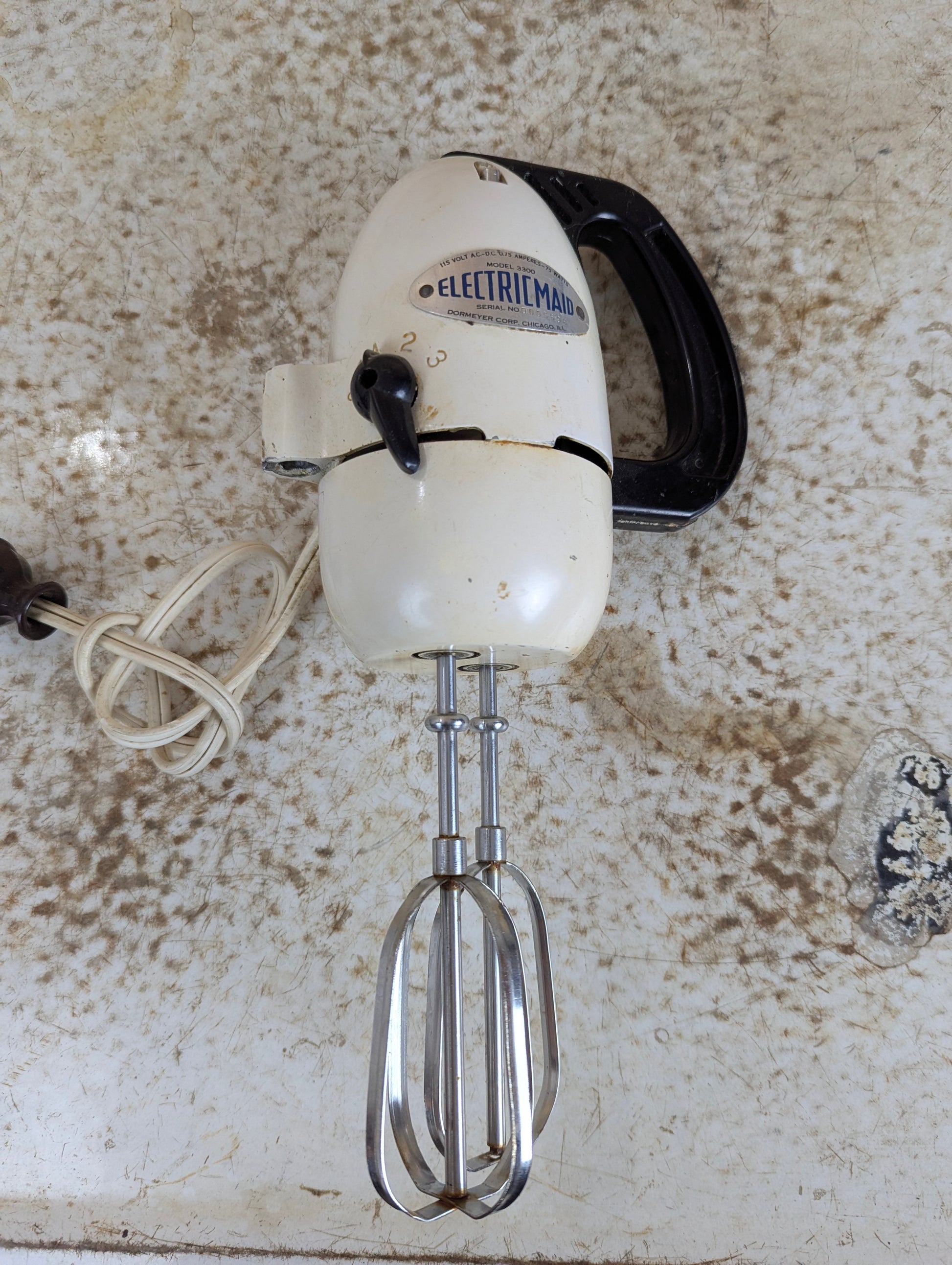 This Vintage Dormeyer Electricmaid Mixer Head is in good condition and fully operational. Originally designed as part of a large mixer, it works perfectly as a hand mixer, offering reliable performance and versatility. A great find for anyone seeking a functional, classic kitchen tool with lasting durability.