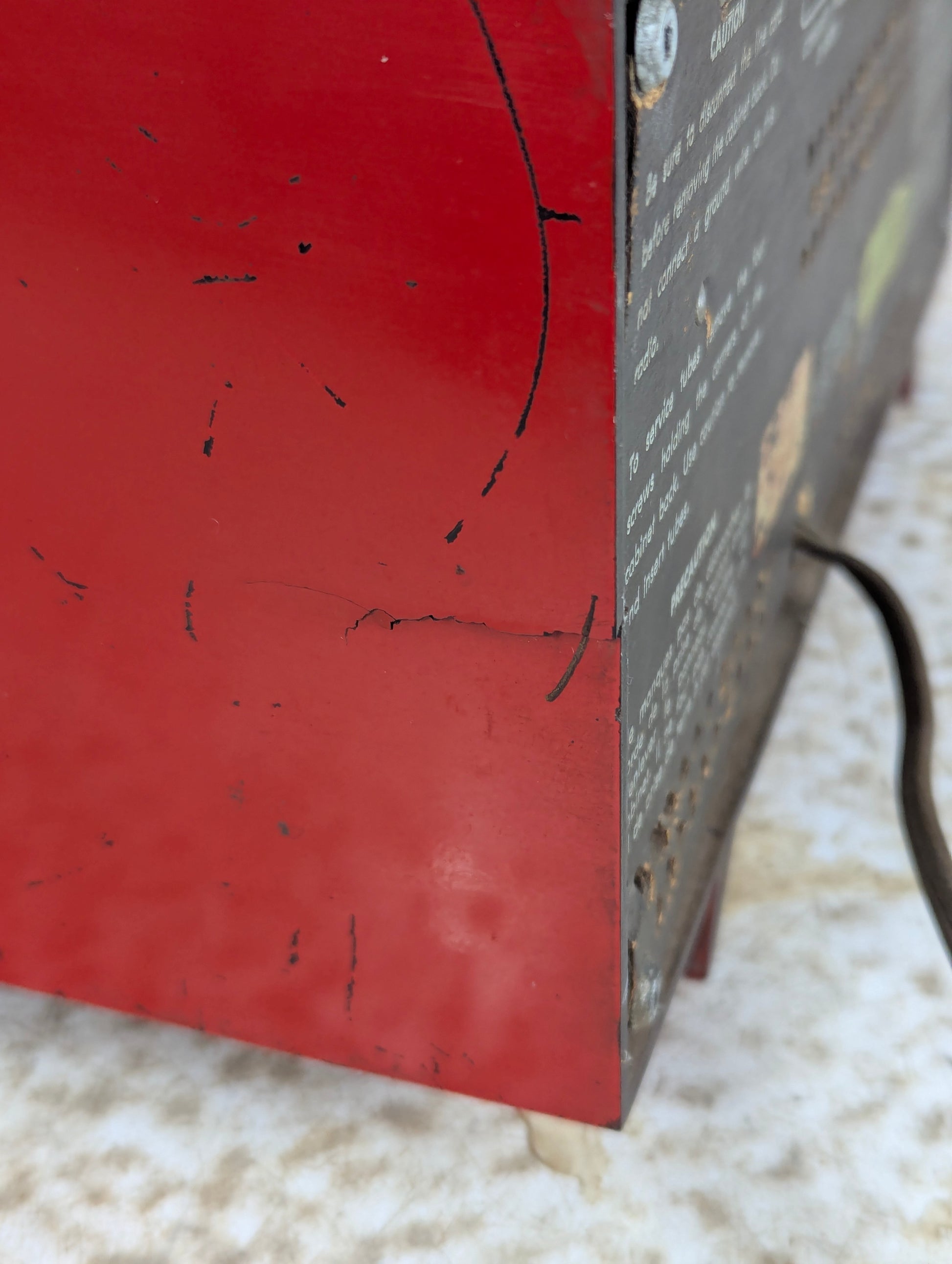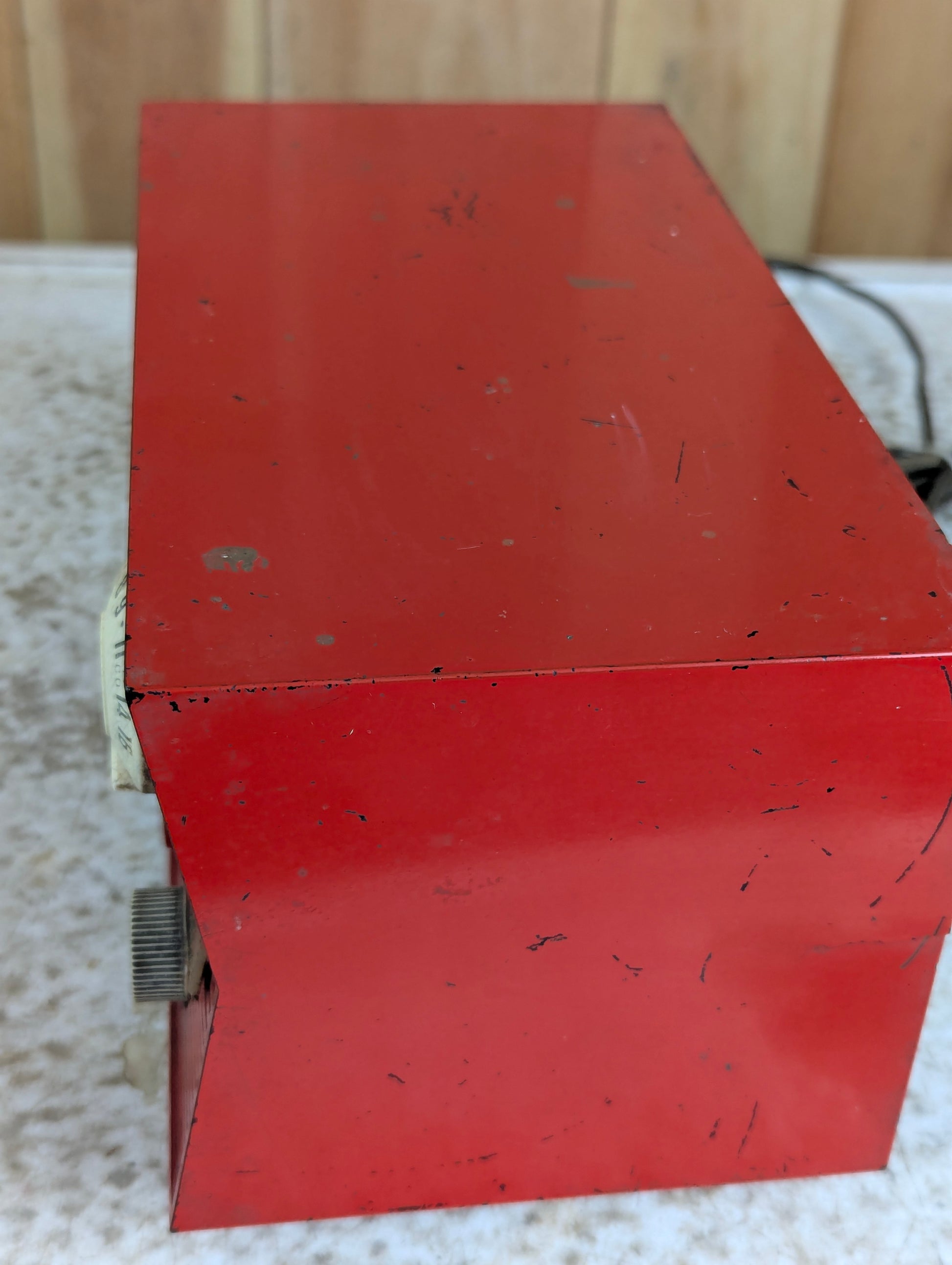 This Vintage Fairbanks Morse AM Radio Model #55R35 is a charming collectible featuring a durable Bakelite case. It’s in good used condition, fully operational, and has been repainted by its previous owner. A small crack along the back of the case adds character without affecting performance, making it a unique addition for any vintage radio enthusiast or collector.
