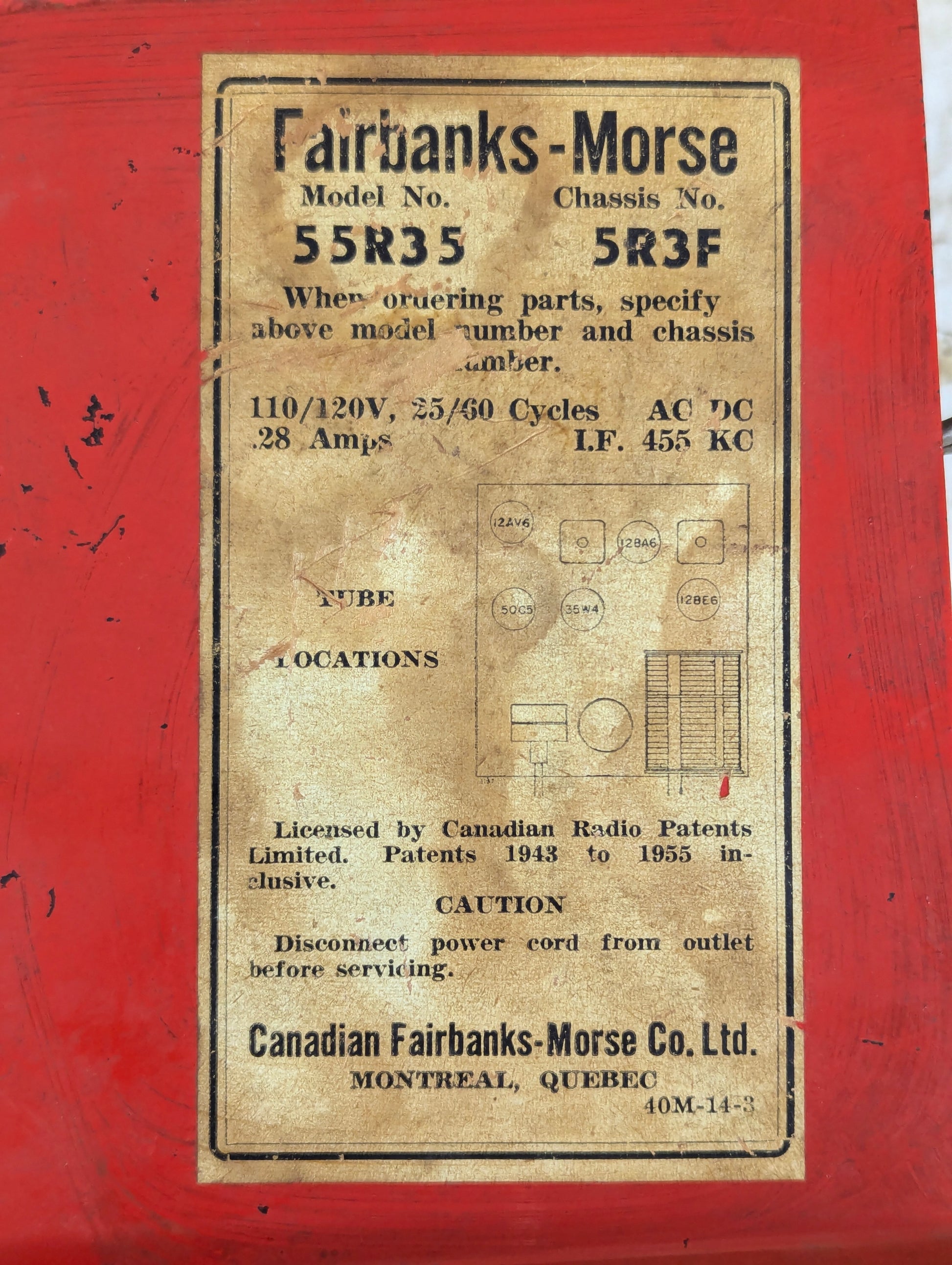 Vintage Fairbanks Morse AM Radio Model #55R35