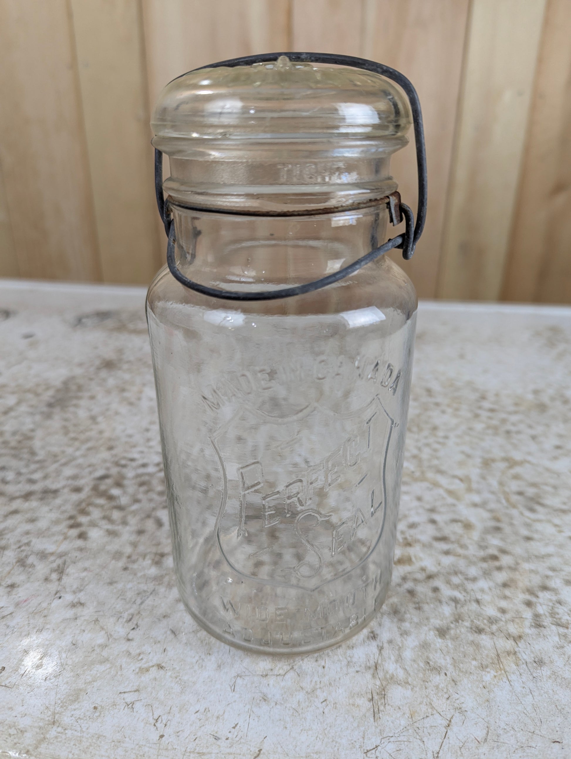 Vintage Glass Top Round Perfect Seal Mason Jar