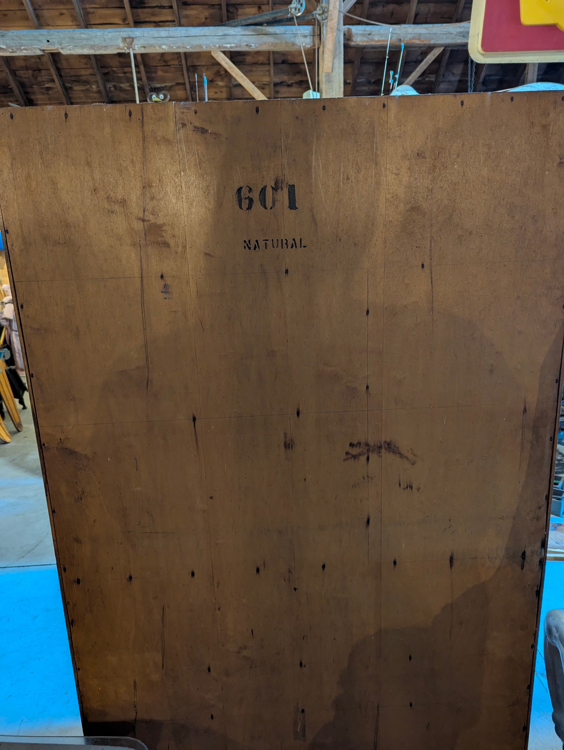 This Vintage Hoosier Cabinet, measuring 20” x 39” with a height of 67”, offers a charming rustic, farmhouse style appeal perfect for your kitchen. Featuring an enamel slide-out work area and ample storage with two large and two smaller drawers, plus a spacious bottom cabinet with double doors, it combines practicality with classic design. Crafted with durable Bakelite handles, this piece is in good condition and ready for a little TLC to restore its full beauty. Add timeless character and functional storage to your home with this unique vintage find.