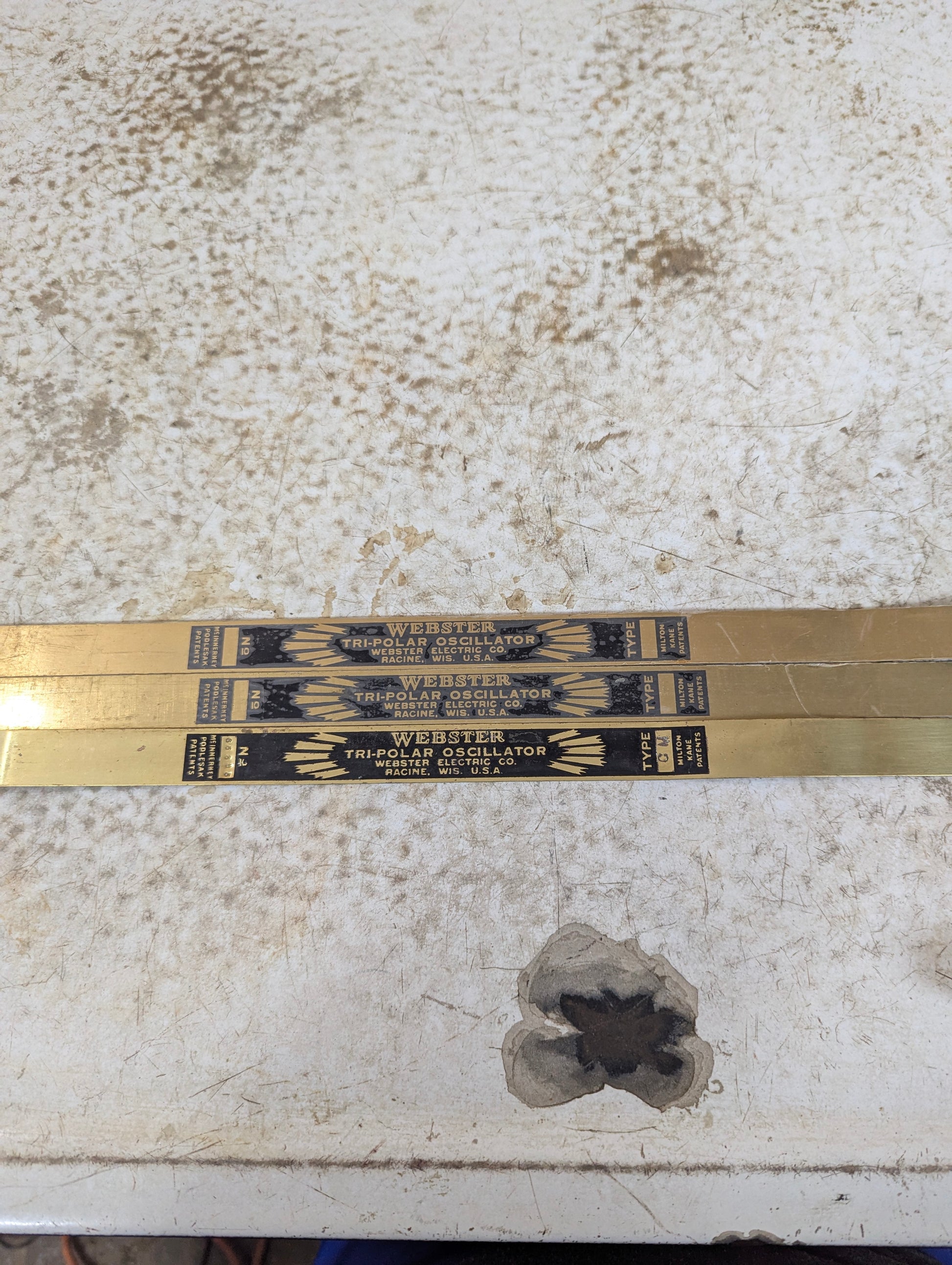 Vintage Industrial Webster Electric Co. Tri-Polar Oscillator Brass Blank Nameplate
