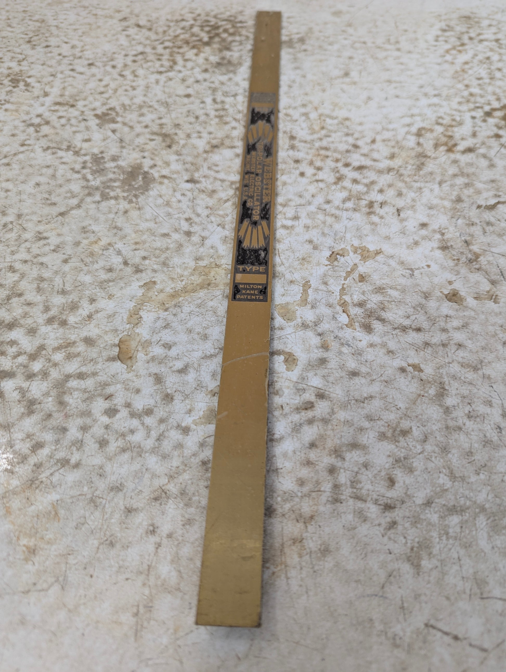 This vintage brass blank nameplate from Webster Electric Co., Racine, Wisconsin, measures 18” x 1” and is ideal for industrial collectors or restoration projects. In good used condition, it offers an authentic touch of history with its distinctive tri-polar oscillator branding. Perfect for adding vintage character or completing a restoration with genuine industrial hardware.