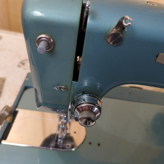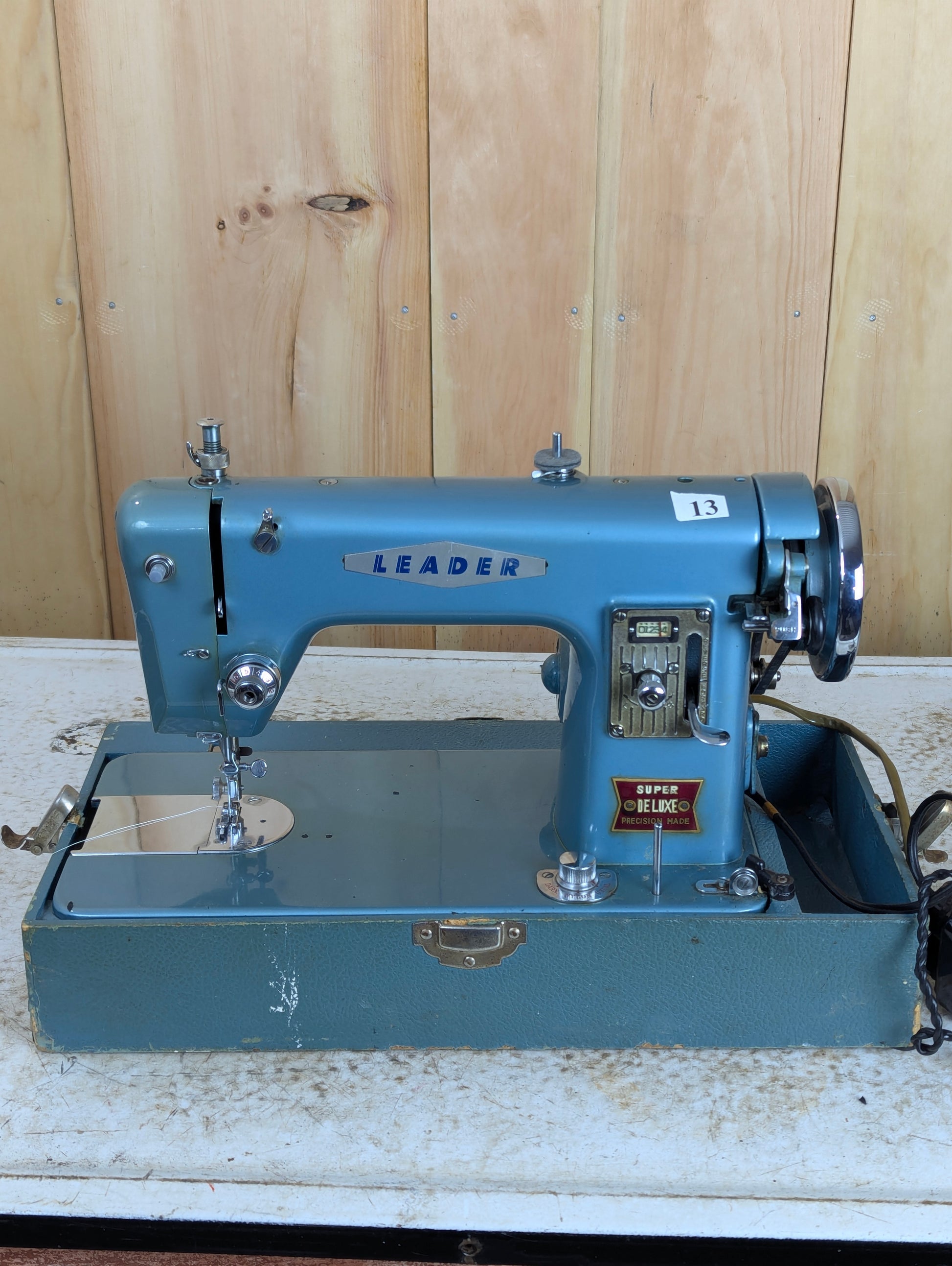 Upgrade your sewing game with the Vintage Leader Super Deluxe Sewing Machine made by Toyota! In good condition and complete with a carrying case and sewing tools, this pedal-operated machine is a must-have for any sewing enthusiast. Just a little oil and it'll be working like new again!