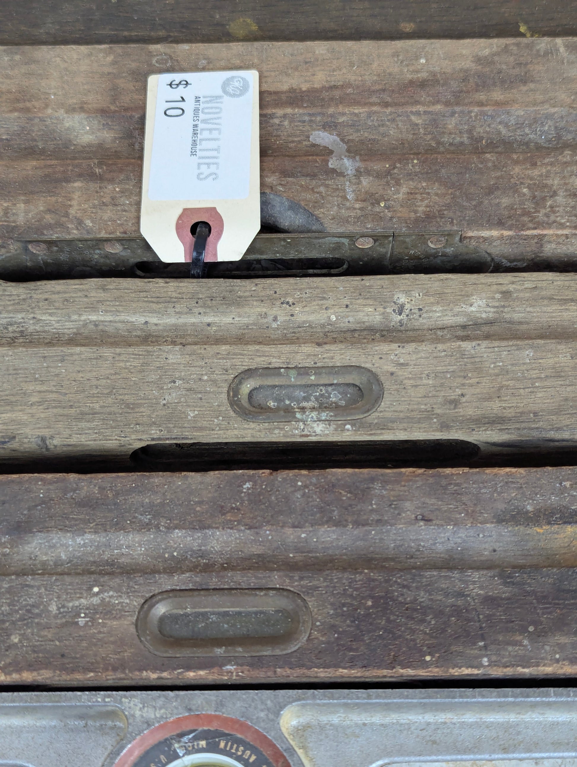 Our Vintage Levels are available in various sizes to suit every project. Crafted for workshop enthusiasts, these tools combine classic design with reliable functionality, helping you achieve perfectly balanced results every time. Elevate your craftsmanship with a timeless tool that’s as practical as it is stylish. Priced at $10 each.