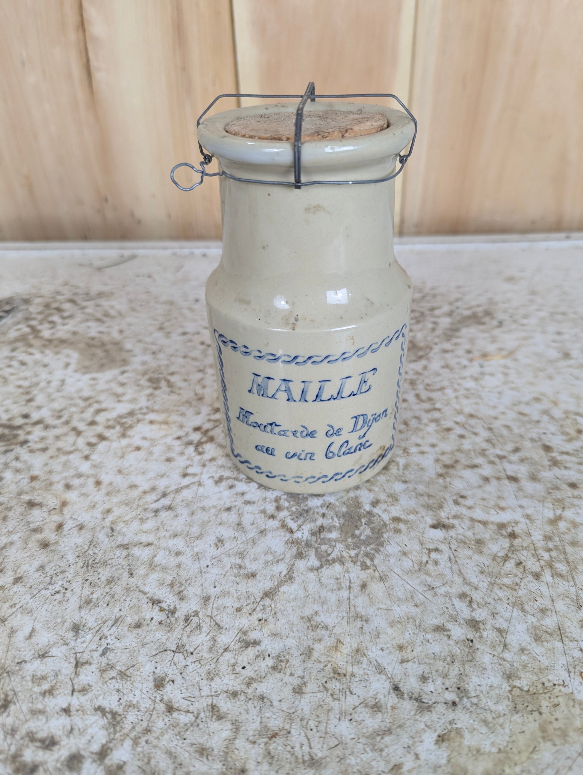 Discover this vintage Maillé Mustard Stoneware Jar, a charming collectible kitchenware piece in good used condition. Featuring a distinctive hand name on the front, it adds authentic character to your culinary collection. Complete with its original lid, this jar not only preserves mustard or spices but also brings a timeless touch to your kitchen decor. Perfect for collectors or those who appreciate vintage craftsmanship.