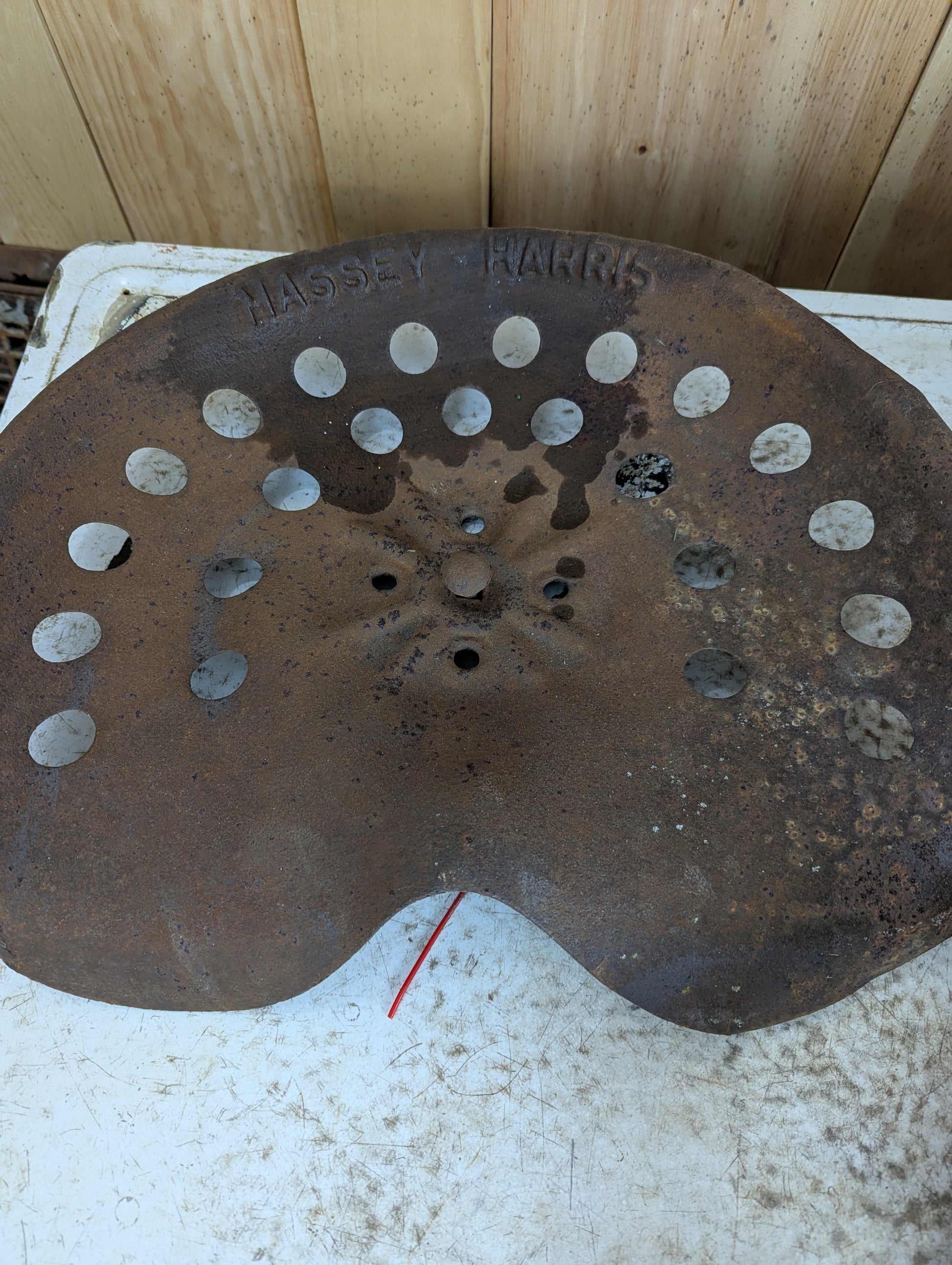 This vintage Massey Harris tractor seat, in good used condition, is perfect for adding rustic charm to any space. Ideal for DIY projects or as unique wall decor, it enhances the character of man caves, workshops, or garages. A collectible piece that brings farmhouse style and history into your home or workspace.