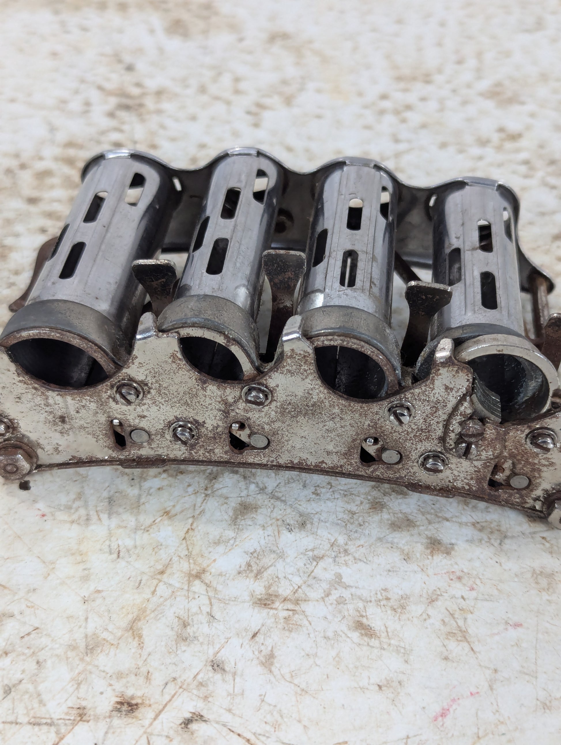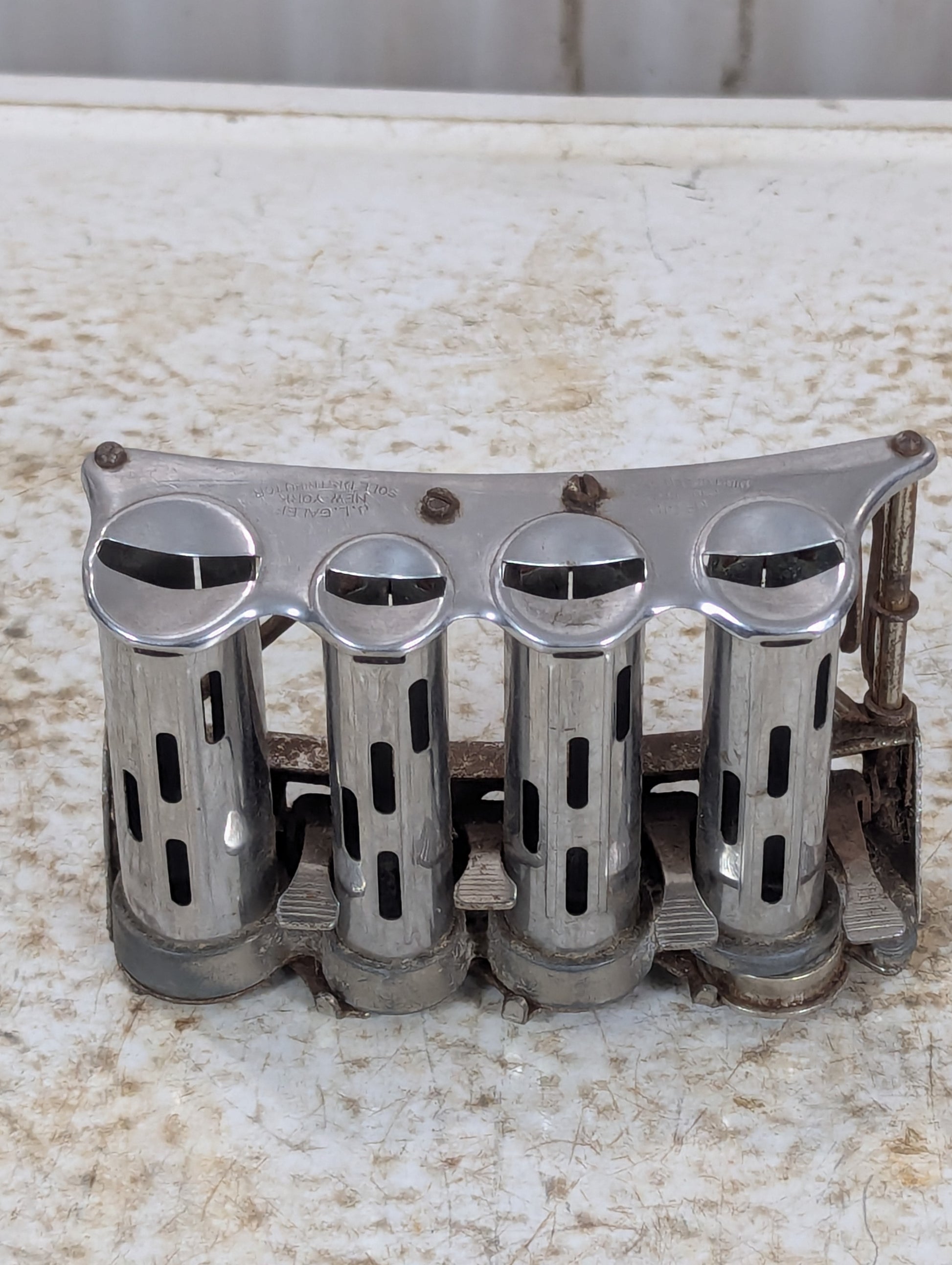 The Vintage McGill Coin Holder Dispenser is a great collectible item in good condition. It features 4 tubes to hold change and 2 clips for clipping onto a belt. At 5.5” wide and 4” high, it is both functional and stylish. A must-have for any coin collector!