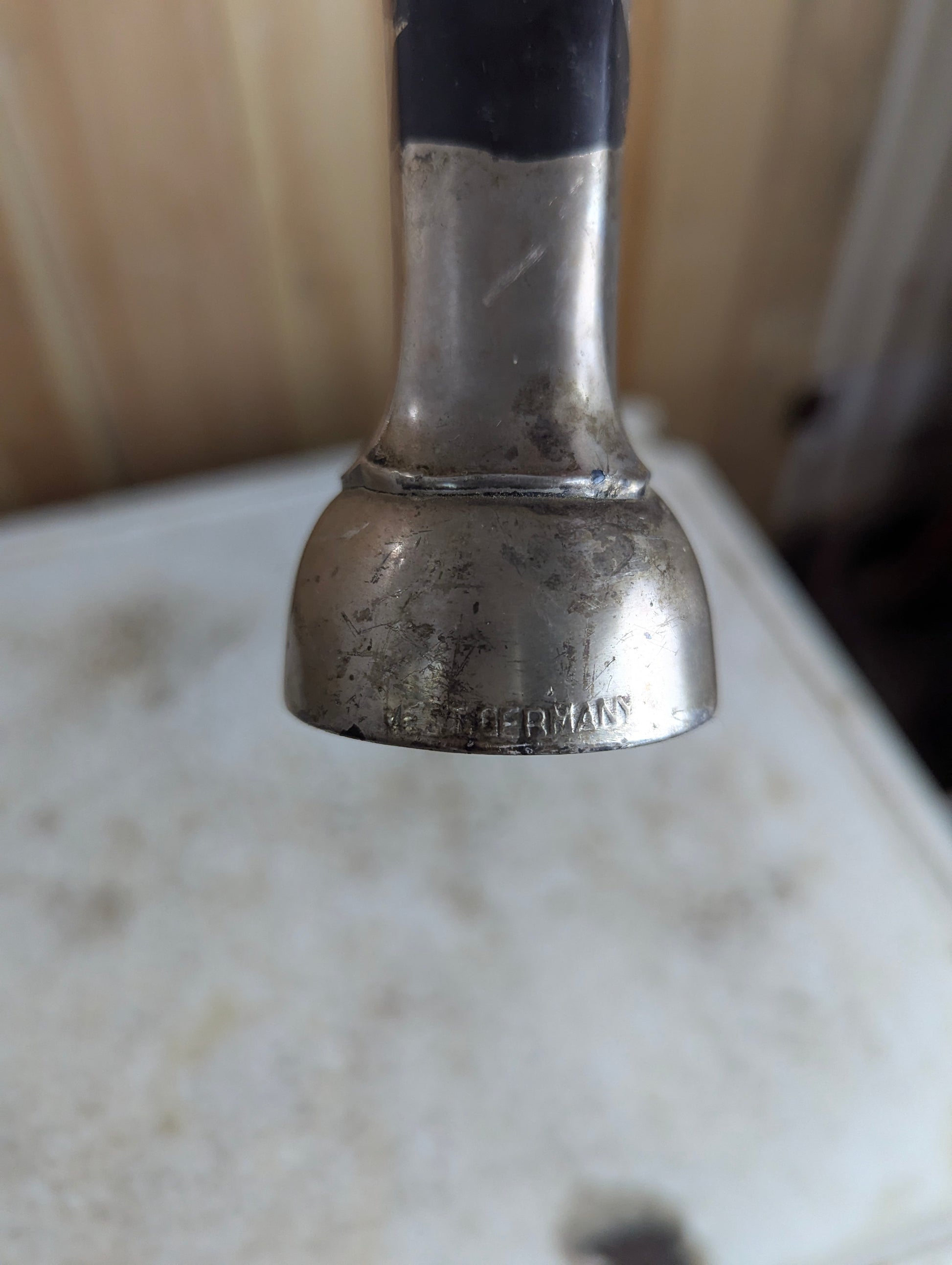 This vintage pewter Virgin Mary statue, made in West Germany, stands 9 inches high and shows charming signs of wear that add to its authentic collectible appeal. A timeless piece, it brings a touch of history and reverence to any space, perfect for collectors or those seeking meaningful décor.