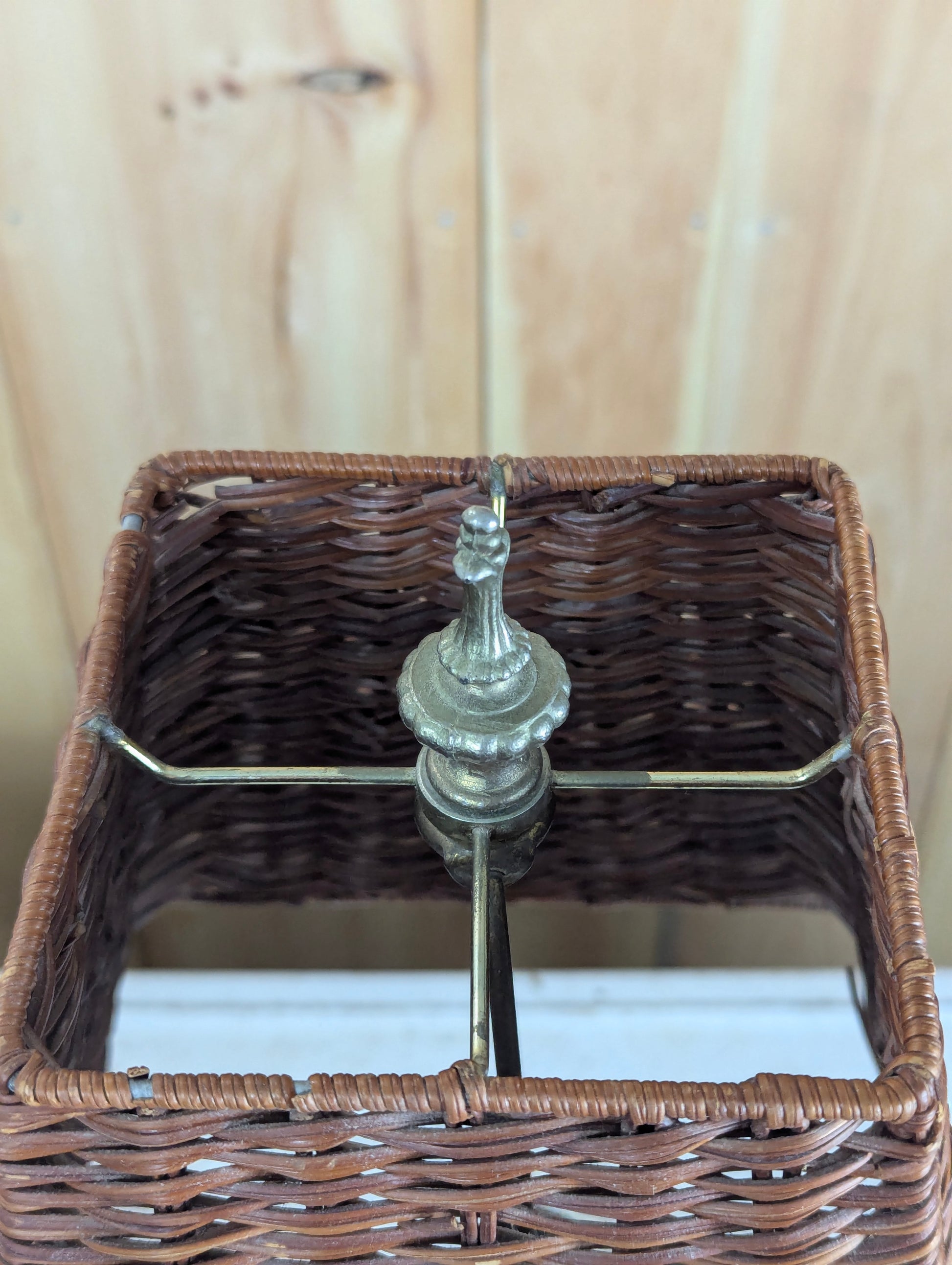 The Vintage Phil Mar Deer Table Lamp features a charming wicker shade and a sturdy base measuring 6.5" x 4". Standing 24" tall, it brings a warm, rustic touch to your home decor. In excellent condition, this lamp is perfect for adding character and cozy lighting to any room.