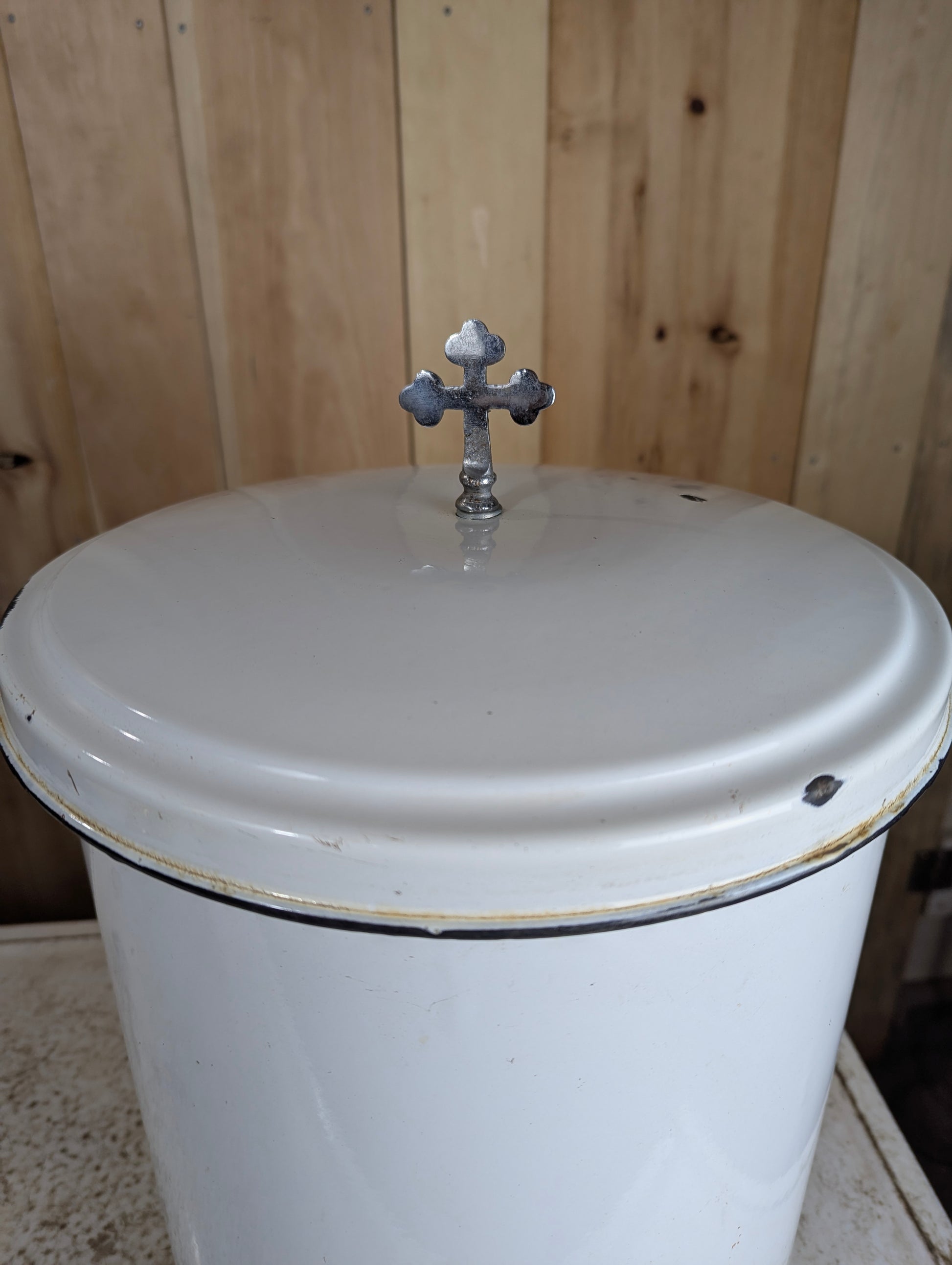 Vintage Porcelain Enamel Baptismal Font