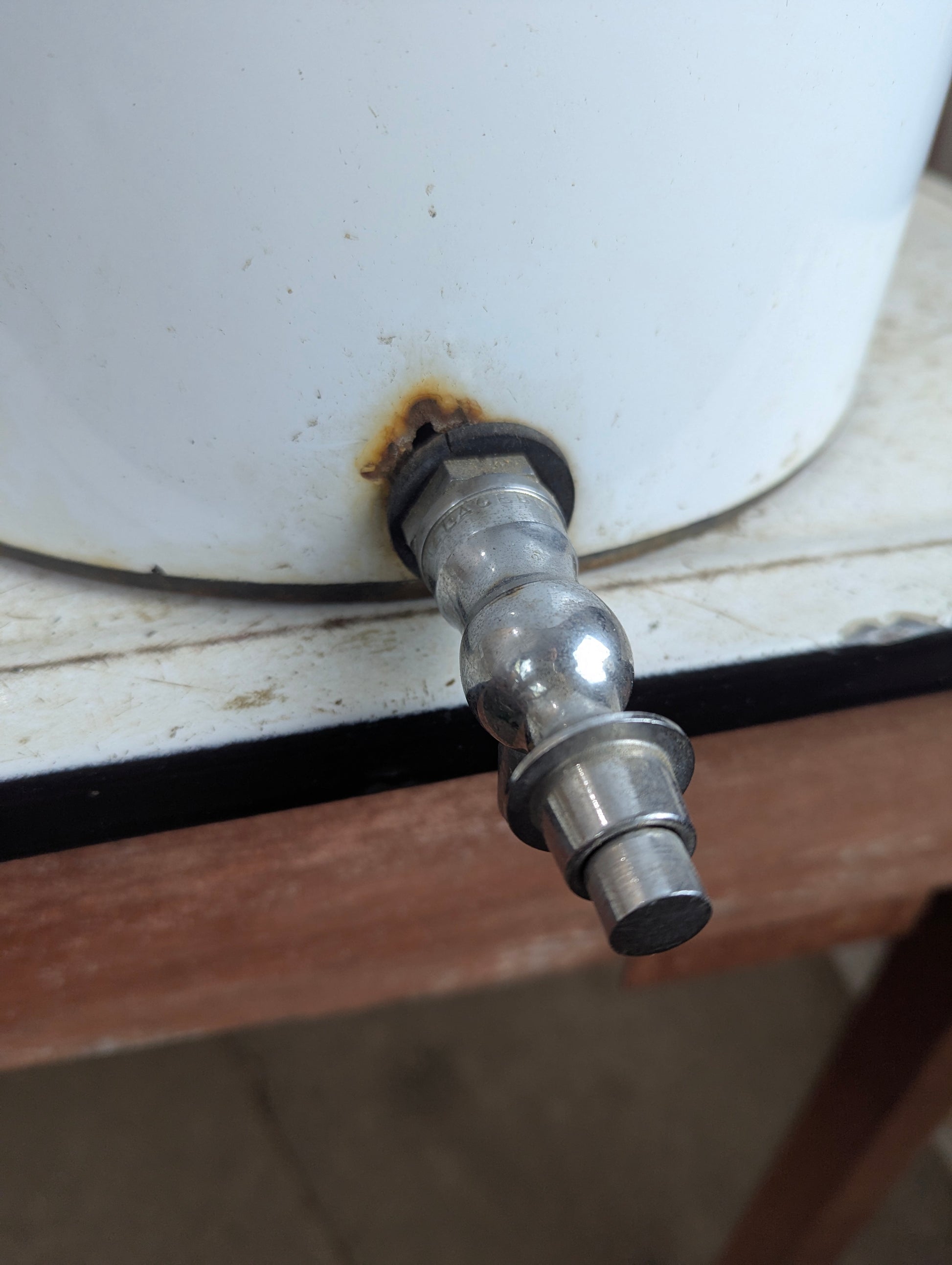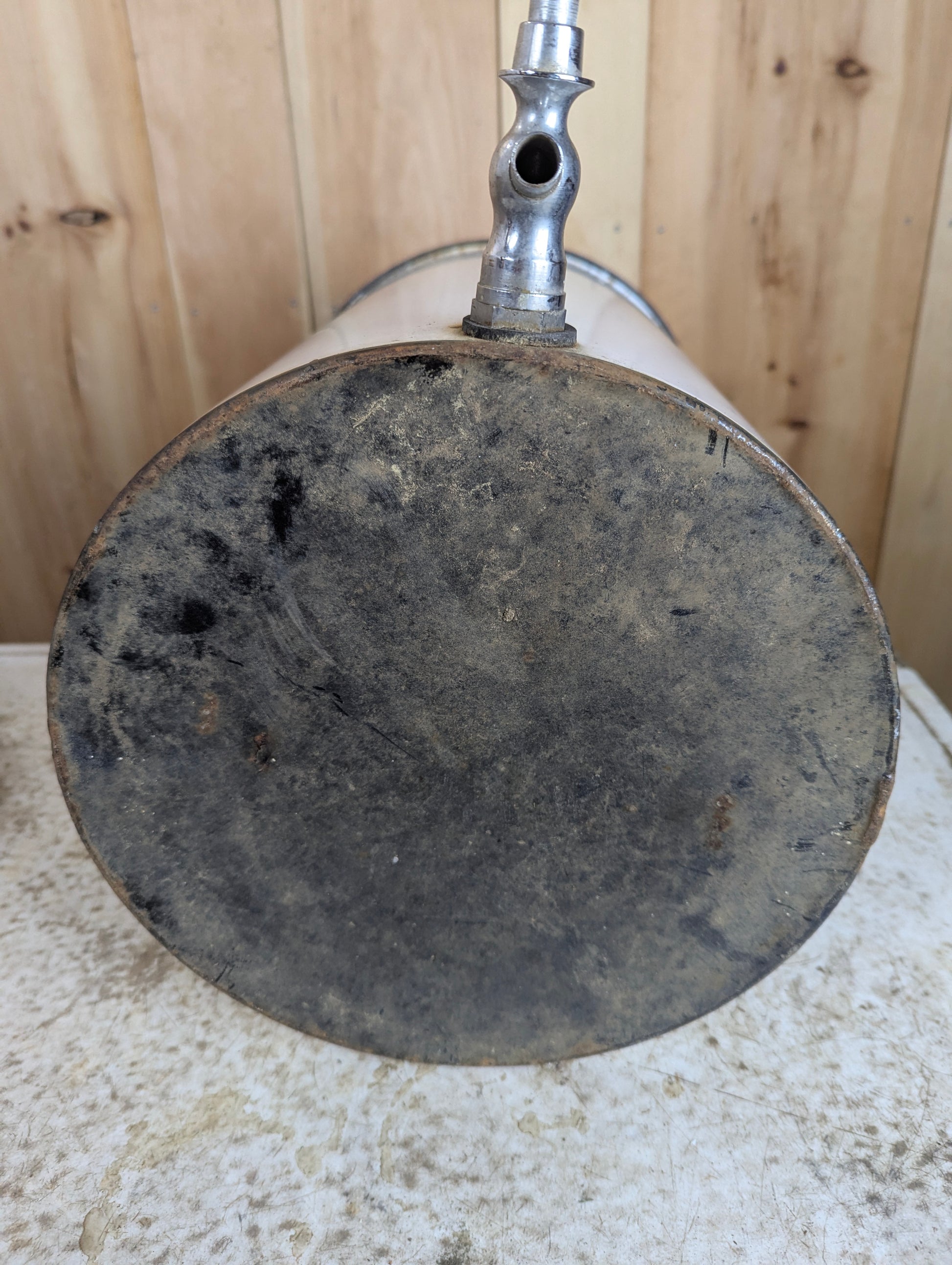 This vintage porcelain enamel baptismal font, sourced from a Catholic Church in Quebec, offers a unique piece of religious history. Measuring 11.5” in diameter and 20” high, it includes its original lid and spigot for easy use. Despite a hole near the bottom by the spigot, it remains a charming and authentic collector’s item, perfect for enthusiasts of religious artifacts or vintage decor. Its distinctive character and storied past make it a standout addition to any collection.