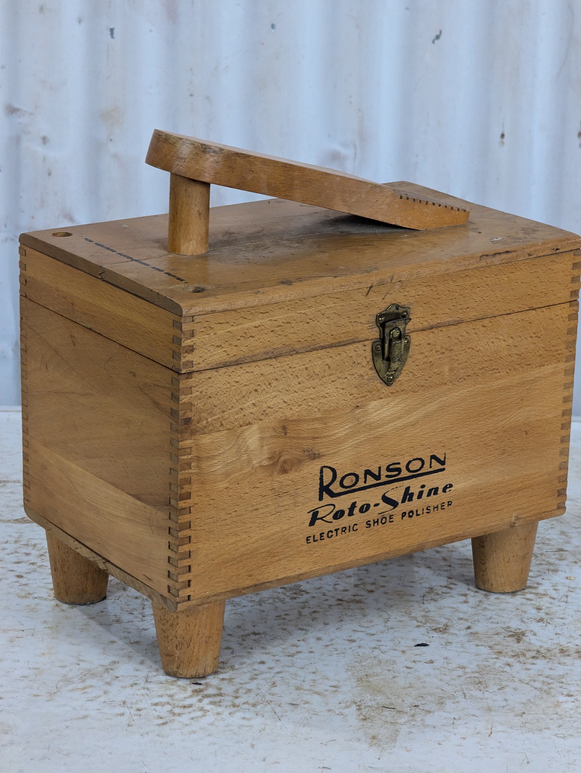 Elevate your shoe care routine with this Vintage Ronson Roto-Shine Electric Shoe Polisher. Housed in an elegant wooden box with a convenient carrying handle, this electric polisher comes with shoe shine contents.